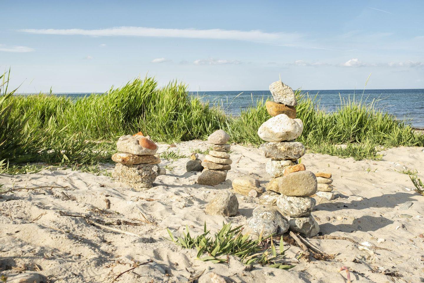 Von der Terrasse aus hat man einen traumhaften Blick über die Felder und Falshöft auf die Ostsee. Für moderne Standards sorgen Fernseher, Musikbox und WLAN sowie die im gegenüberliegenden Kuhstall angesiedelte Sauna mit Ruheraum und Blick auf den Leuchtturm von Falshöft. Bettwäsche und Handtücher sind im Preis enthalten.