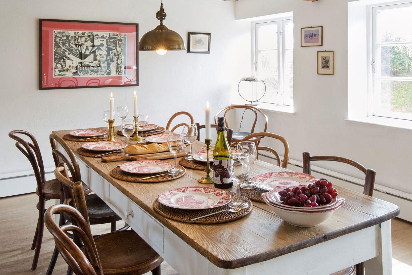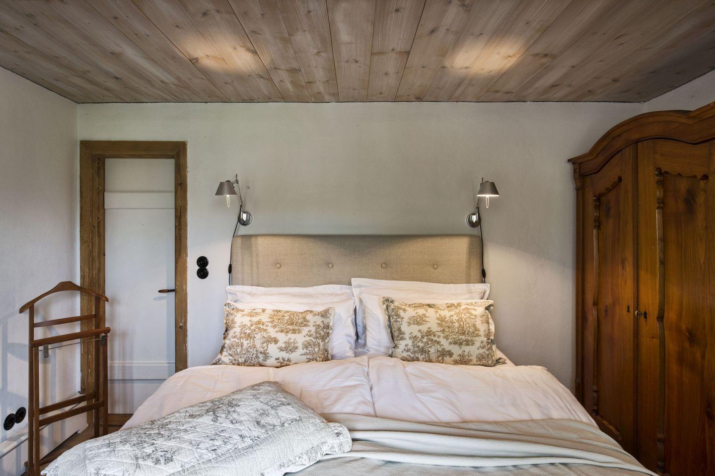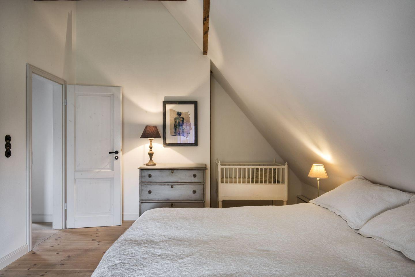 Die 5 individuell gestalteten Schlafzimmern bieten Patz für bis zu neun Gäste. 3 Bäder sorgen für Komfort, zwei Wohnzimmer bieten genug Platz für gemeinsame Abende oder ruhige Momente allein. Die große und gut ausgestattete Küche lädt zum gemeinsamen Kochen ein. Der Lange Esstisch für ausgedehnte gemeinsame Abendessen. Wer noch mehr Personen unterbringen möchte, kann im benachbarten Kuhstall ein Gästezimmer mit eigenem Bad dazu buchen und die Belegung auf 11 Personen aufstocken.