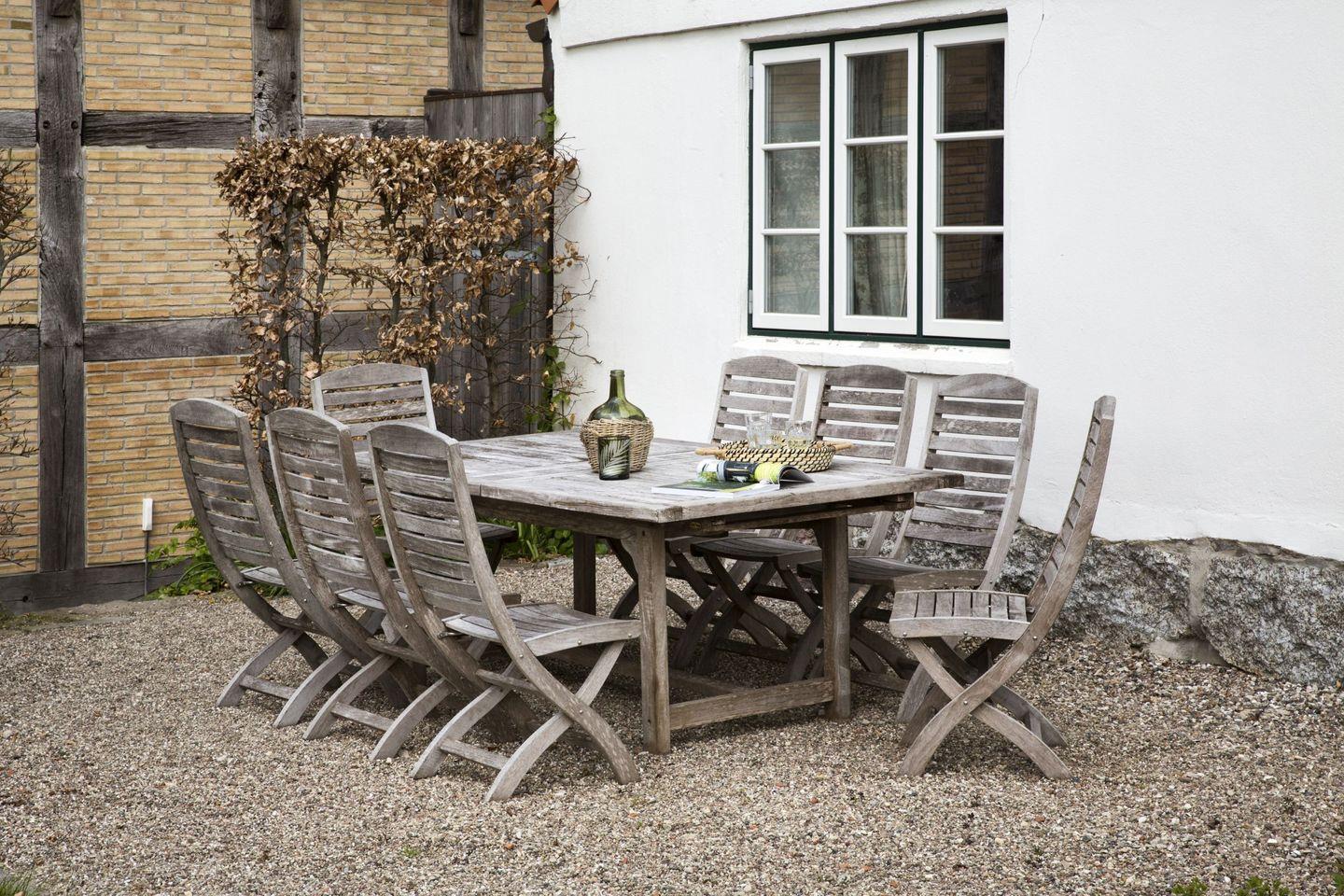 Der weitläufige, verwunschene Garten ist eine grüne Oase mit viel Platz zum Entspannen – auf einer der Sonnenliegen oder im Strandkorb. Auf der Terrasse unter der großen, 300 Jahre alten Eiche sitzt man Wind- und Sonnengeschützt.