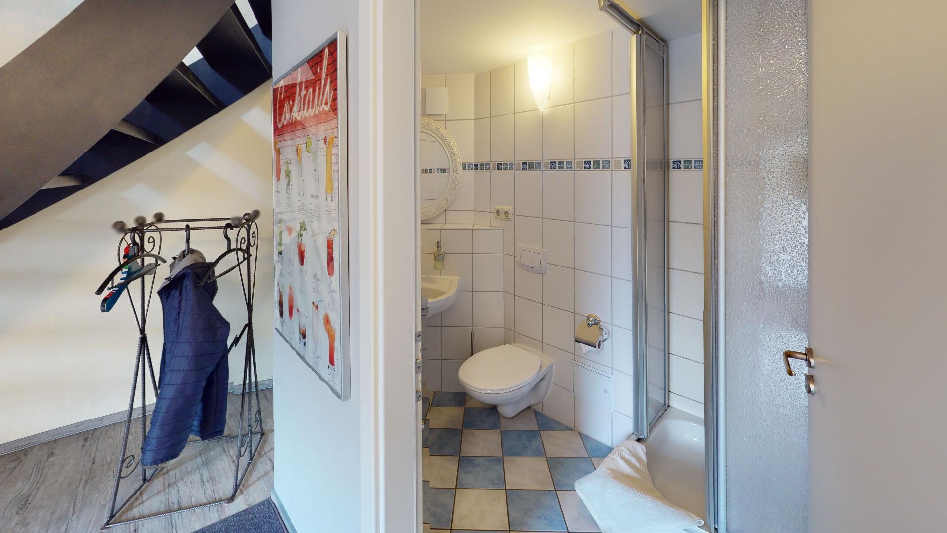 Bad/WC: Dusche; Föhn; Toilette; Waschbecken