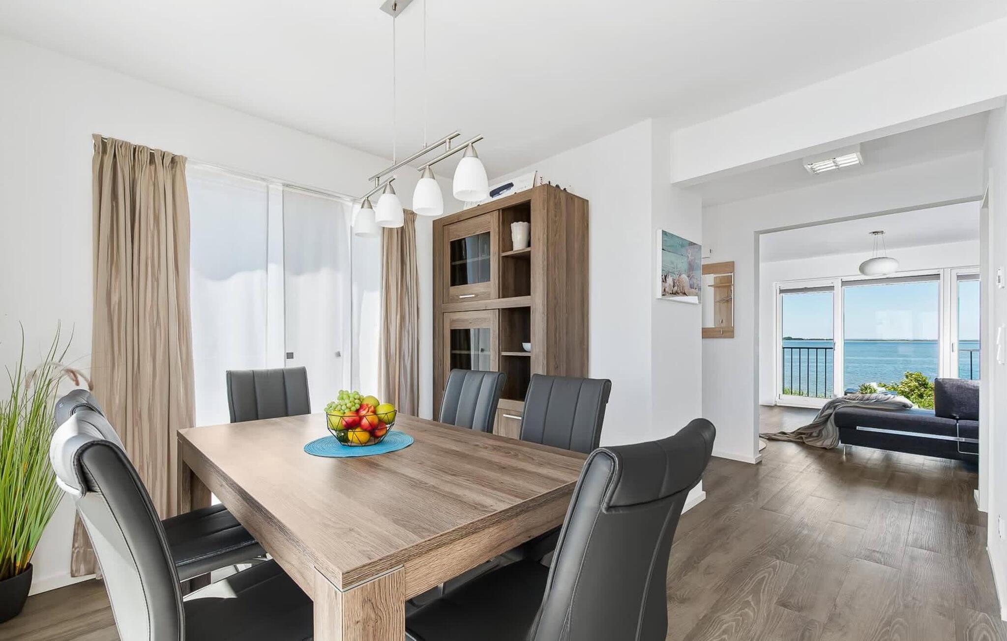 Unser Lieblingsplatz: Im Wohn- oder Essbereich Platz nehmen mit Blick auf die Panorama-Wasserfront, den Kopf drehen und zur anderen Seiten ebenfalls nur Wasser sehen.