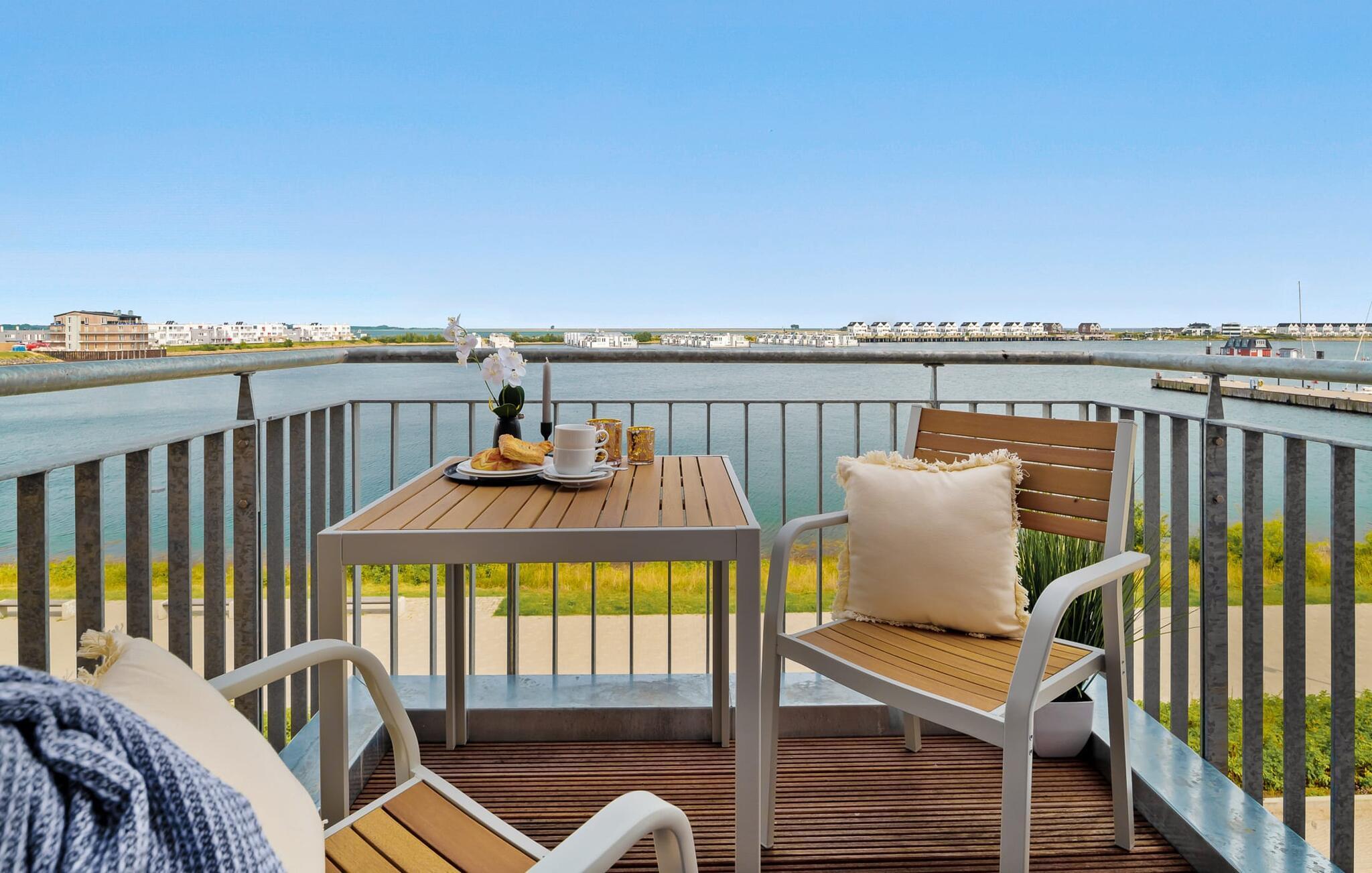 Genießen Sie moderne Ferienwohnung mit Hafenblick und Strandnähe im Ostseeresort Olpenitz.
