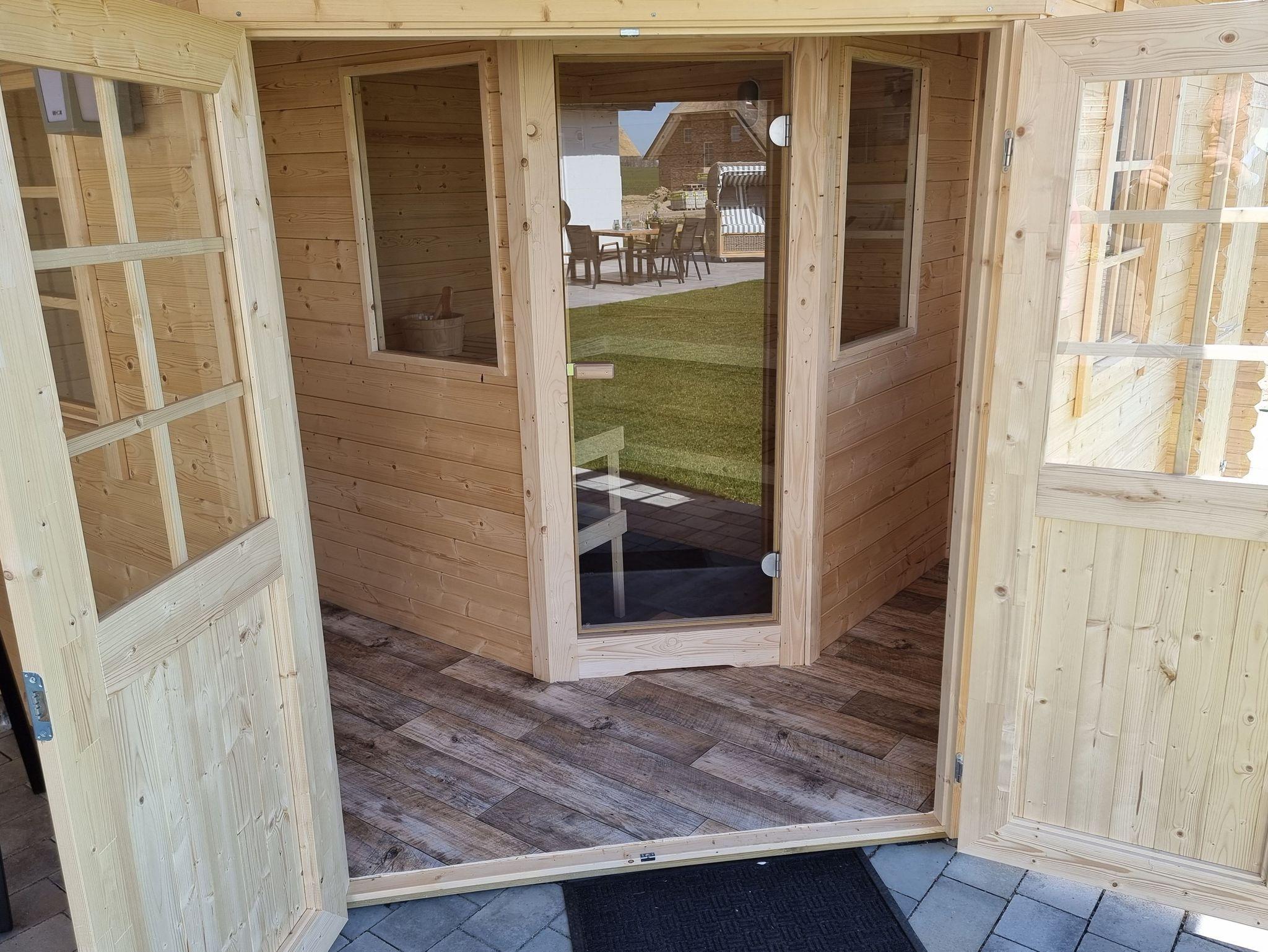 Neu erbautes Ferienhaus mit drei Schlafzimmern, 2 Bädern, großem Garten, Sonnenterrasse und Sauna im Garten am Rande des Naturschutzgebietes Üselitzer Wiek.