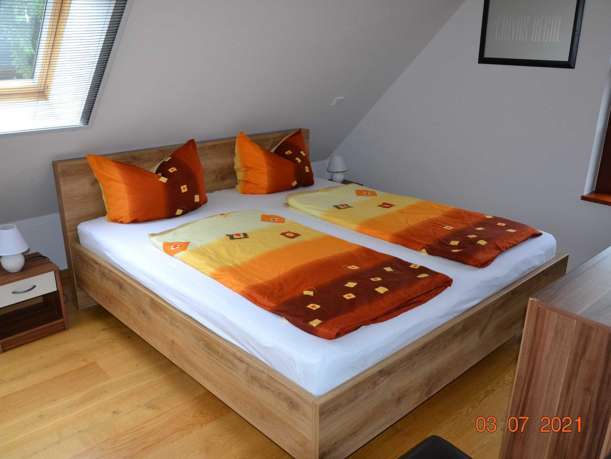 Die 80 m² große Ferienwohnung verfügt über ein gemütlich eingerichtetes Wohnzimmer mit Sitzgruppe (TV, Radio, Schreibtisch). Die offene Küche ist modern, mit Ceranherd, Spülmaschine und Esstisch ausgestattet.. Zwei separate Schlafzimmer stehen für Sie bereit, eines mit Doppelbetten (TV) eines mit zwei Einzelbetten. Im geräumigen Bad finden Sie neben dem Waschtisch auch eine Dusche. Auf dem Grundstück stehen Gartenmöbel für Sie bereit und es besteht die Möglichkeit zum Grillen.
