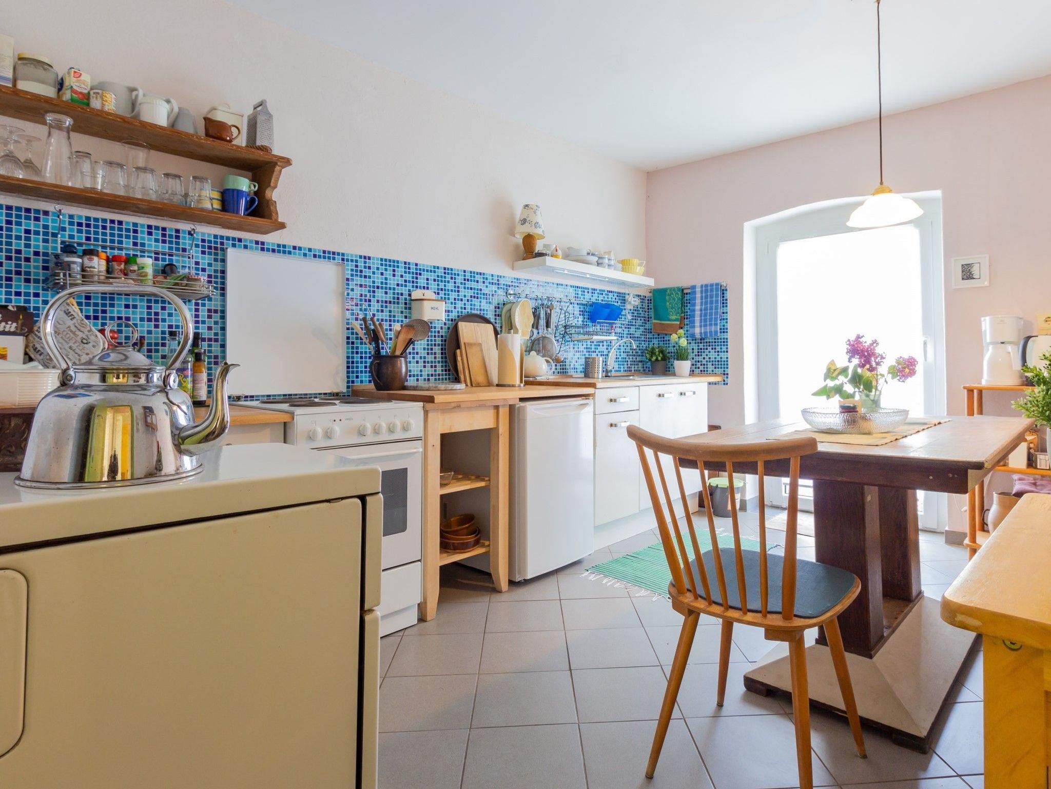 • ein Kachelofen dient in den Übergangsmonaten und im Winter als Heizmöglichkeit