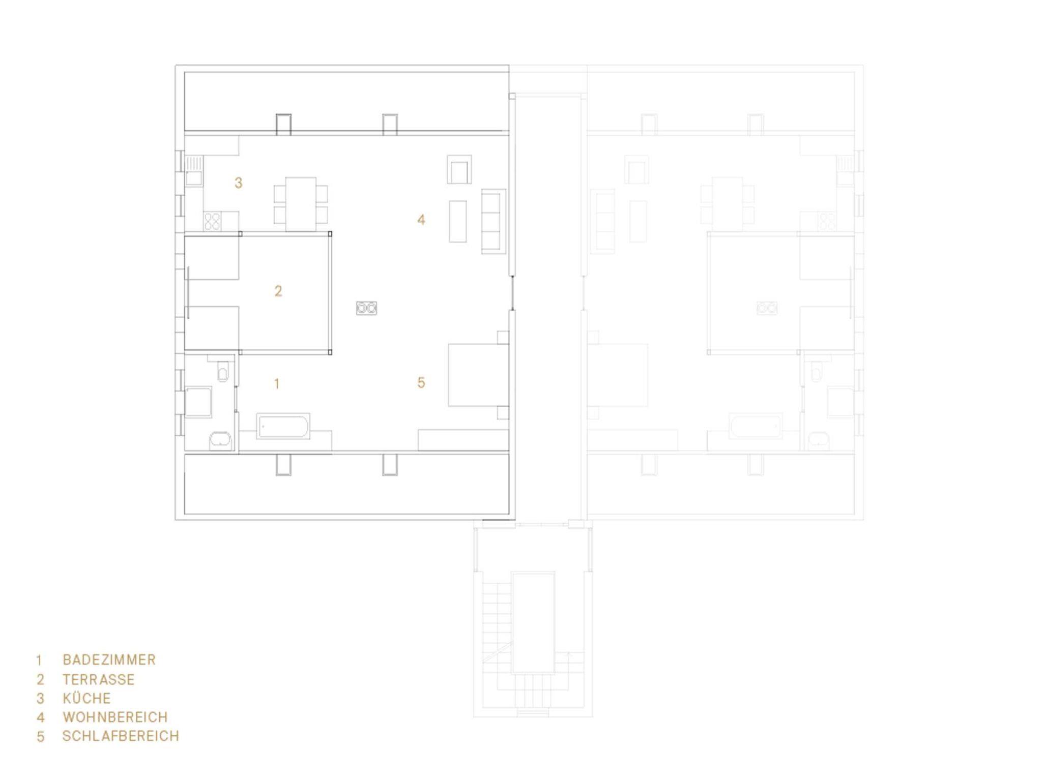 • offener Grundriss mit Schlafbereich, Wohnbereich, Küche und freistehender Badewanne