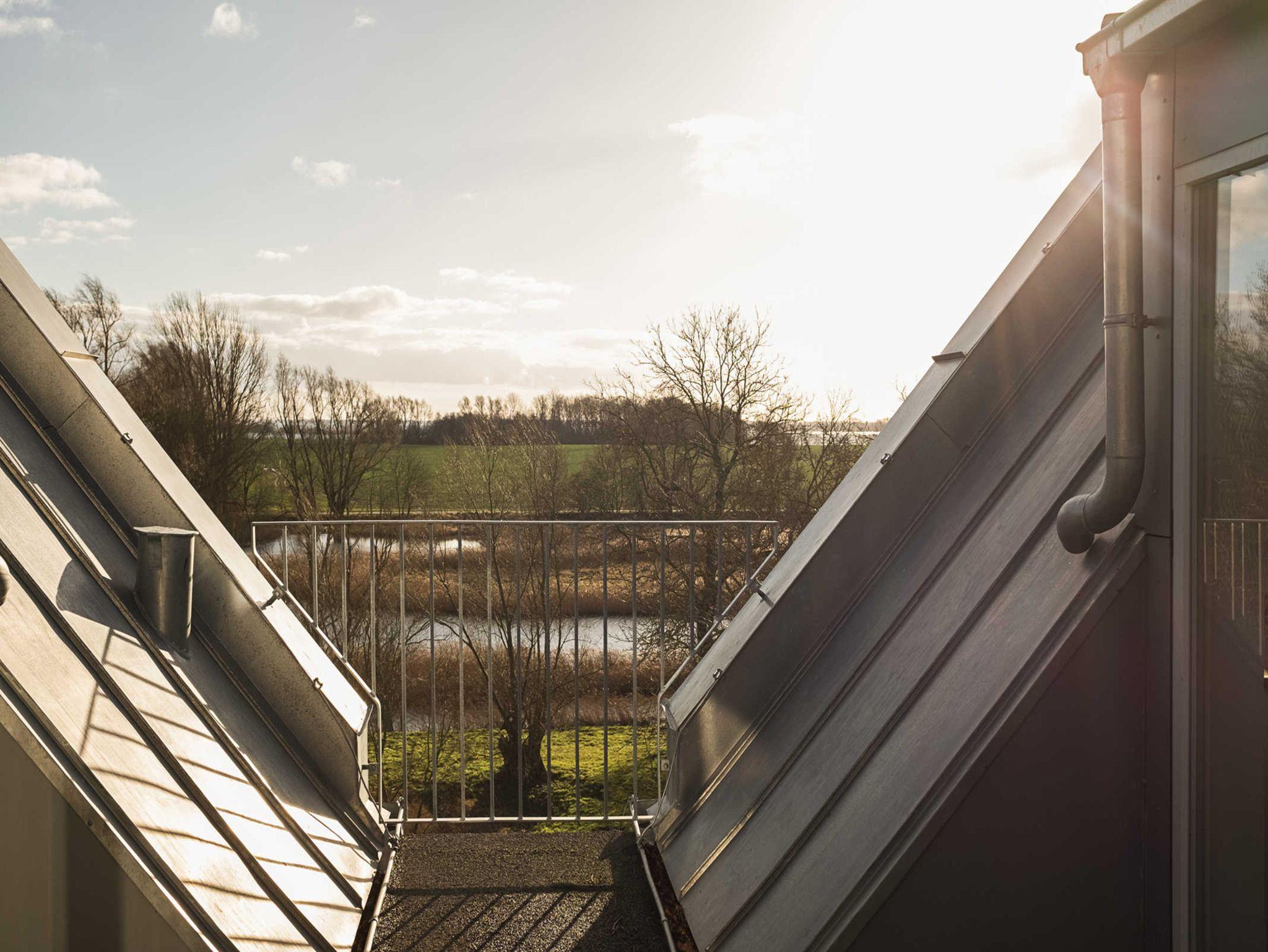 Die Grundmauern der alten Scheunenflächen des ehemaligen landwirtschaftlichen Guts sind wieder sichtbar gemacht worden. Der Ausblick von Haus und Park ist zu allen Seiten geprägt durch die Lage direkt am Wasser.