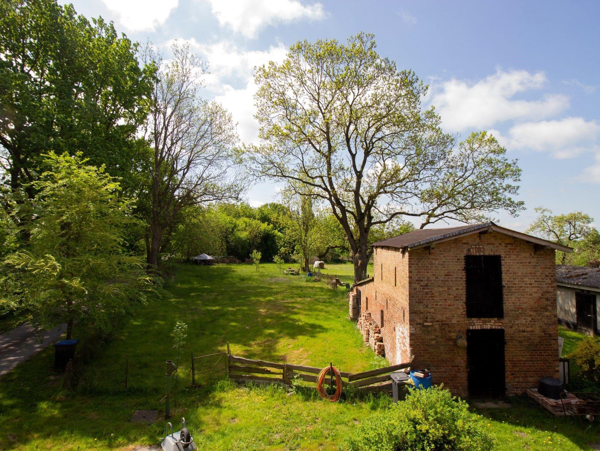 Das Landhaus liegt auf einem ca. 6400 qm großen Grundstück, bestehend aus typischen Bauerngärten mit Teich, Blumenbeeten, Gemüseanbau und Obstbäumen, weiten Wiesenflächen und schattenspendenden alten Bäumen.