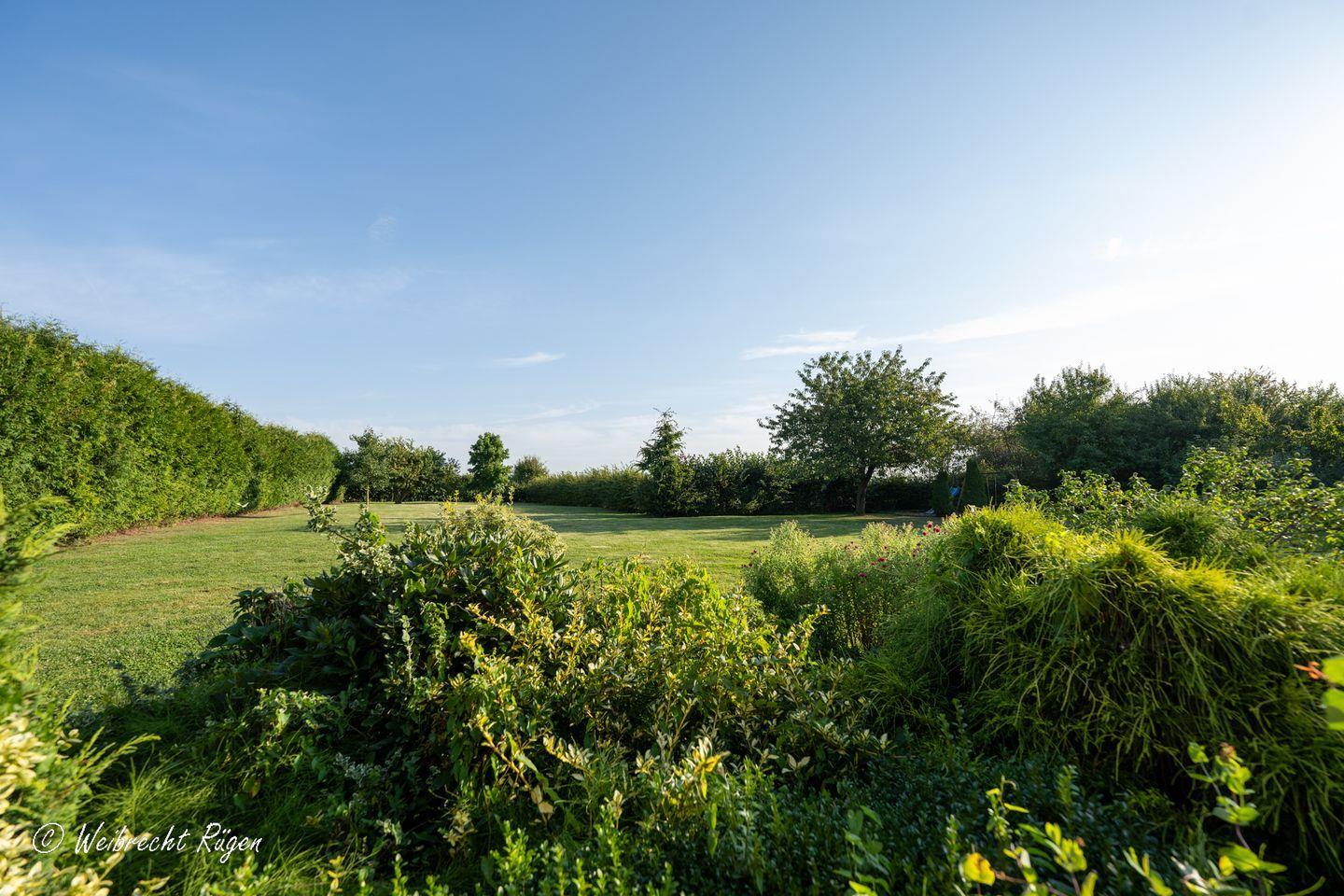 Ein echtes Highlight ist der über 3.000 m² große, komplett eingefriedete Garten – fast uneinsehbar und umgeben von Feldern. Hier finden Sie einen separaten Grillplatz und lauschige Sitzecken für ruhige Stunden in der Natur. Bis zu zwei wohlerzogene Hunde sind herzlich willkommen.