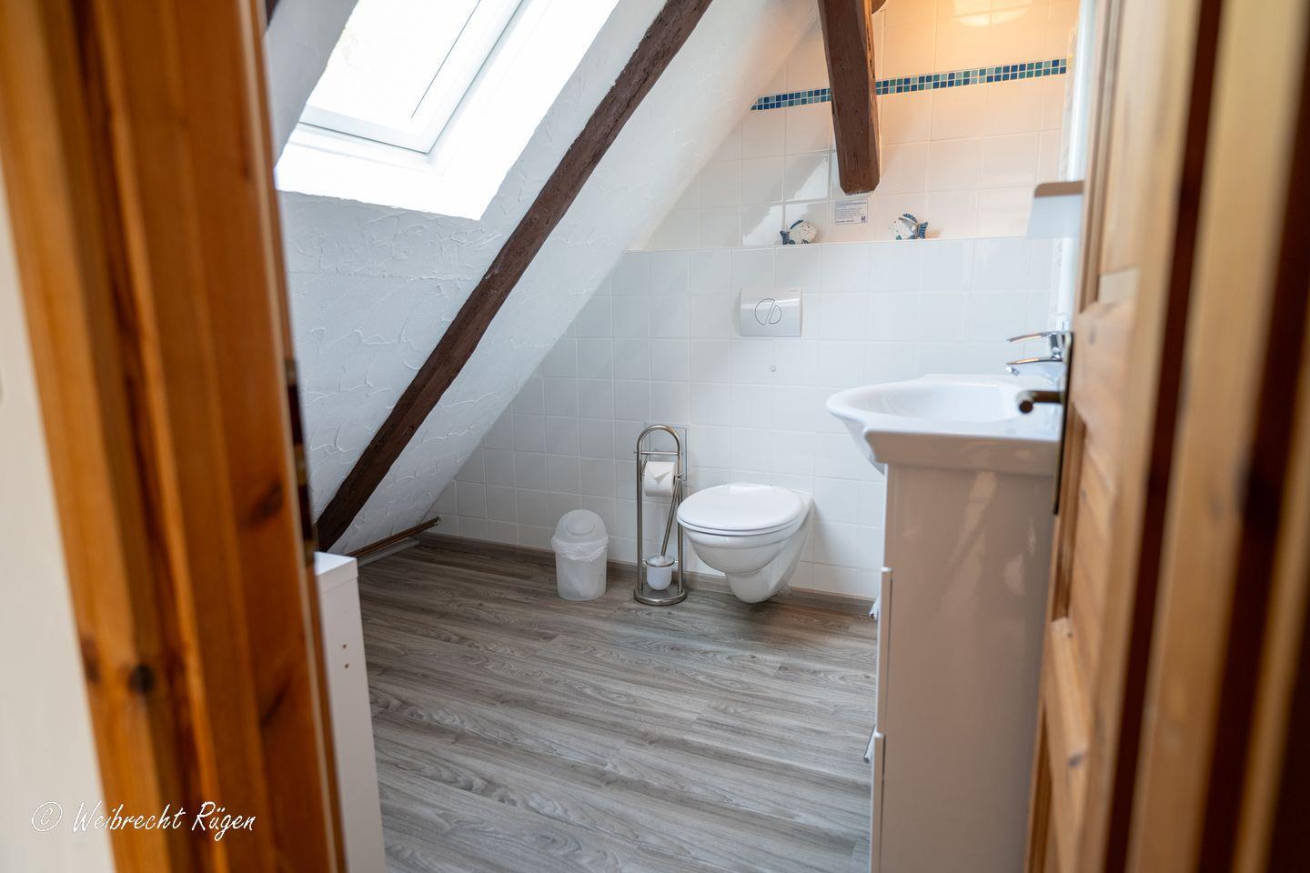 Über eine Treppe gelangen Sie zur kleinen Galerie im Dachgeschoss. Von hier aus führen Türen in das zweite, sehr geräumige Schlafzimmer und zu einem zusätzlichen WC. Der liebevoll gestaltete Spiel- und Schlafbereich im Spitzboden wird für Kinder schnell zum Lieblingsort – ein kleines Abenteuerreich mit niedriger Deckenhöhe und viel Gemütlichkeit.