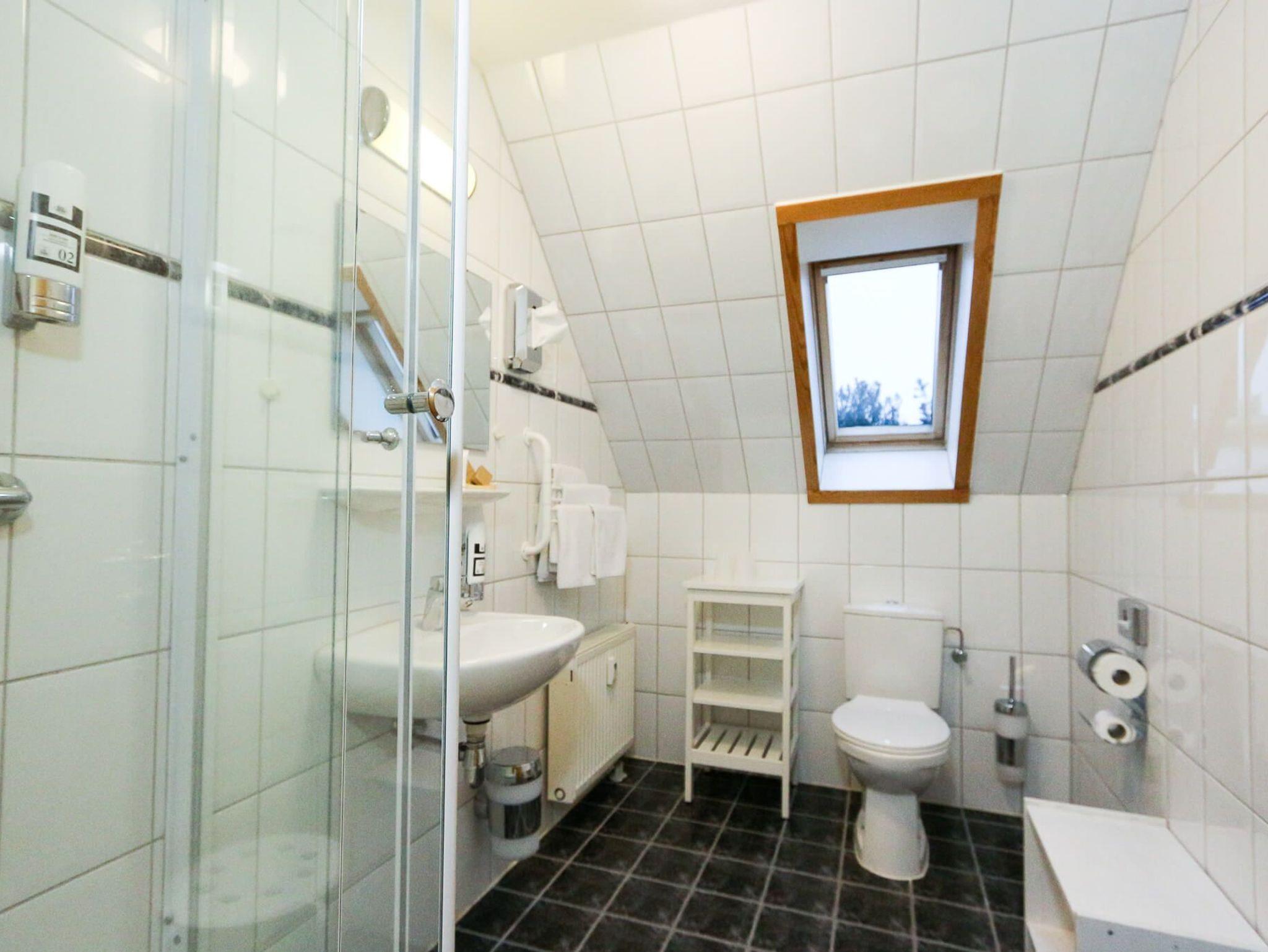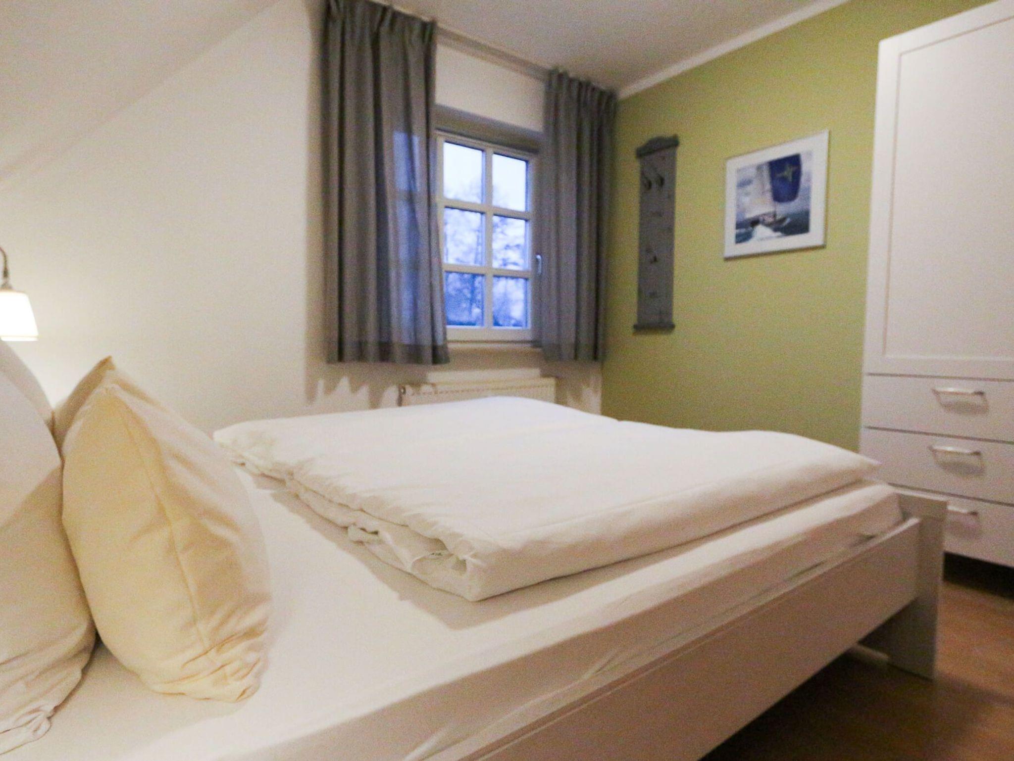 Das Tageslichtbad ist modern eingerichtet und bietet Dusche, WC, Föhn sowie Pflegeprodukte. Über eine Innentreppe gelangen Sie in den Schlafbereich mit Doppelbett (160 × 200 cm, getrennte Matratzen) sowie in eine separate Schlafkoje mit einer Länge von ca. 1,85 m ? ideal für Kinder oder Mitreisende. Kostenfreies WLAN, Bettwäsche und Handtücher stehen zur Verfügung. Das Apartment ist ein Nichtraucher-Apartment und eignet sich besonders für Paare mit Kind oder kleine Familien.