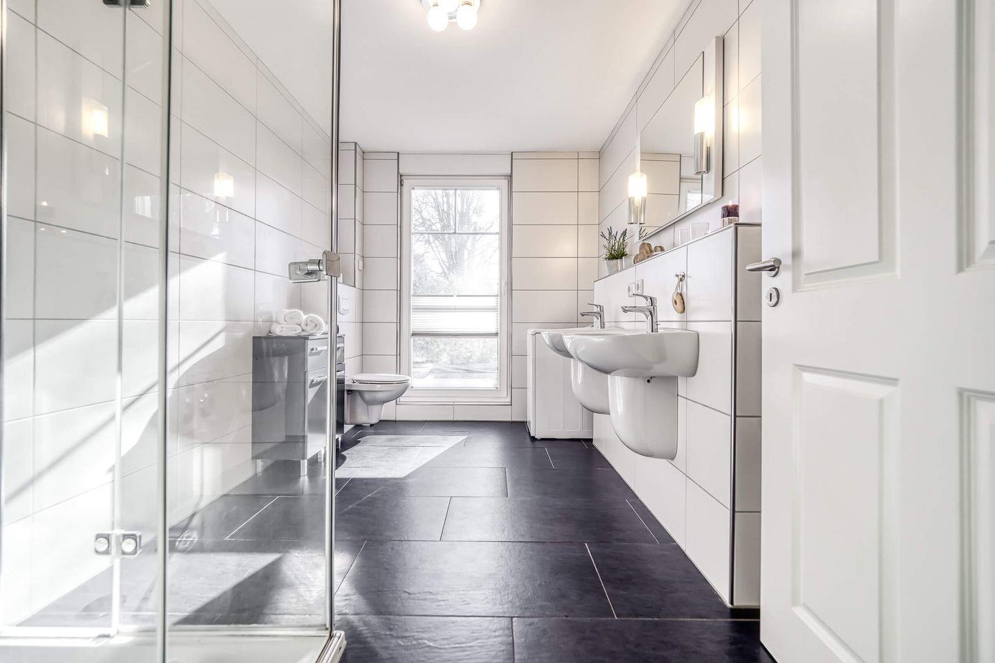 Das Badezimmer ist mit Dusche und WC ausgestattet.