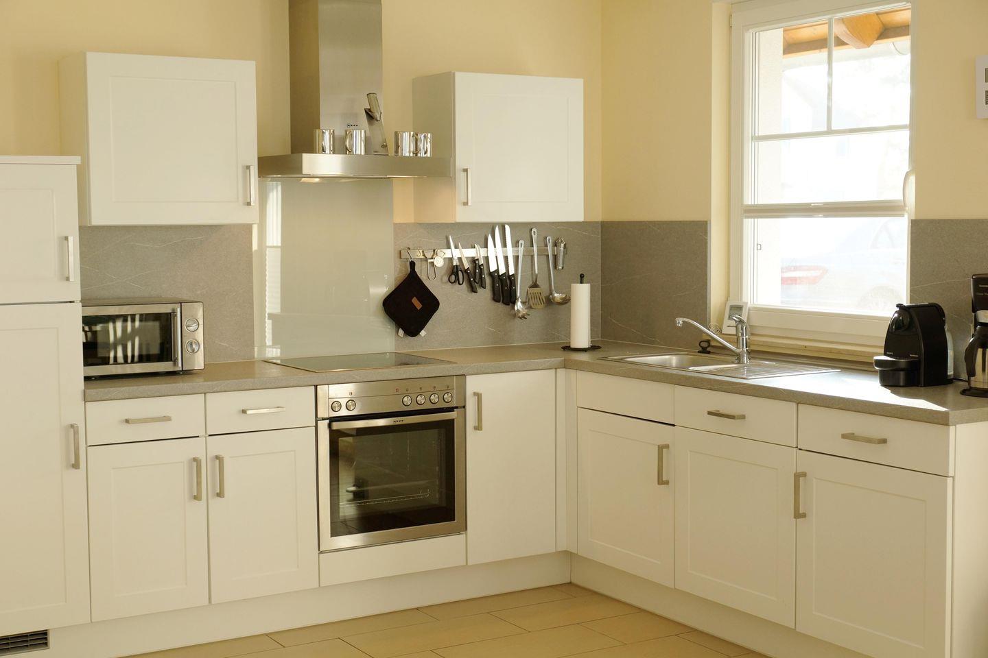 Der helle Wohnbereich mit Essplatz und voll ausgestatteter Küche sorgt für ein angenehmes Ambiente.