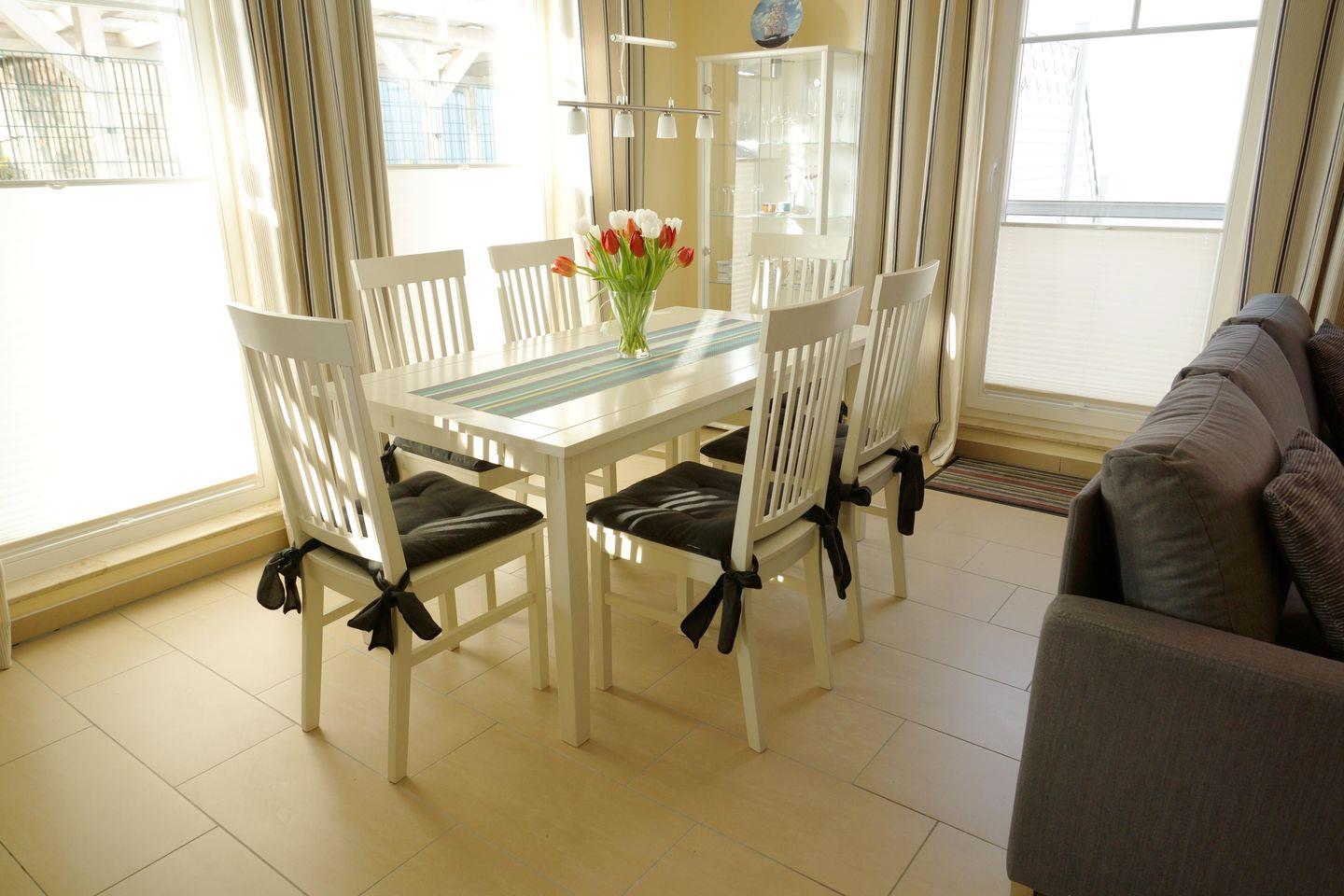 Sie liegt im Erdgeschoss und verfügt über eine private Terrasse mit Gartenmöbeln – ideal für entspannte Stunden an der Ostseeluft.
