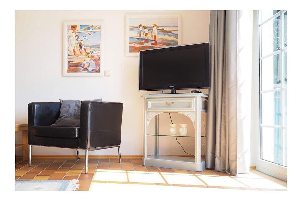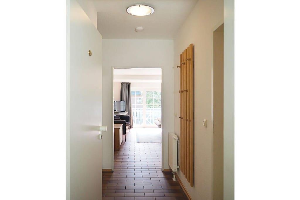 Diese Ferienwohnung liegt fast unmittelbar am Darßwald, in zweiter Reihe. Die ca 40 qm Wohnung verfügt über ein großes, innenliegendes Bad mit Wanne. Auf dem geräumigen Südbalkon können Sie Ihr Frühstück genießen oder den Tag bei einem Glas Wein ausklingen lassen. Der Wohn-,Schlafraum ist modern eingerichtet und die kleine Küchenzeile bietet alles was man braucht. Zur Wohnung gehört ein Parkplatz. Haustiere sind gegen Gebühr herzlich willkommen. Rauchen ist nicht gestattet. Im Fahrradschuppen, der für alle Gäste zur Verfügung steht können Sie Ihre Räder abstellen. Im Hauswirtschaftraum gibt es eine Waschmaschine (Münzautomat).