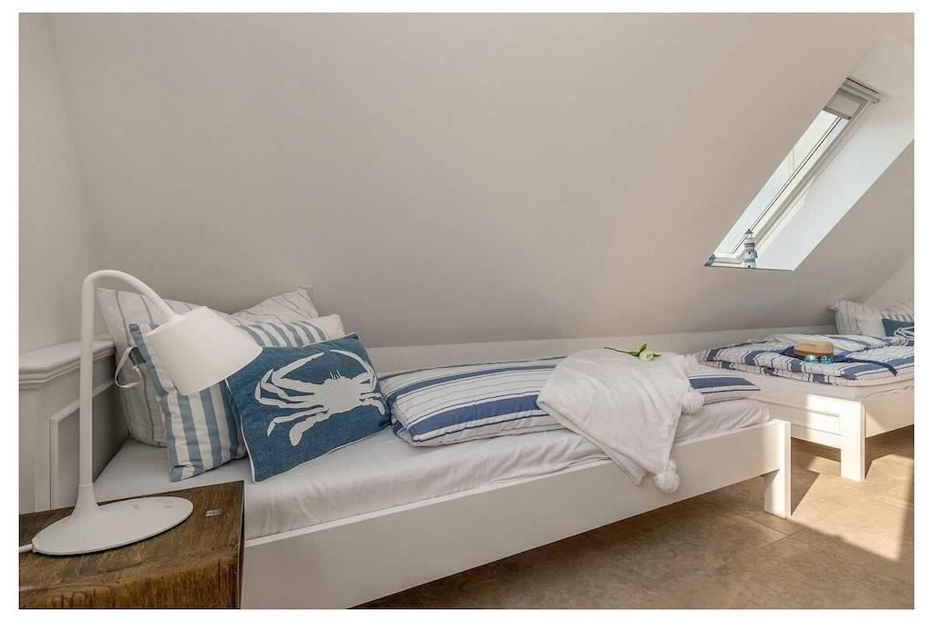 Diese Ferienwohnung Swantow befindet sich im Herzen vom Ostseebad Prerow. Die Maisonette ist 79 m² groß und bietet Platz für die ganze Familie. Hier können Sie am Kamin entspannen und nach langen Spaziergängen, die Sauna des Hauses nutzen. Da die Wohnung Sundevit ebenfalls in diesem Hause ist, können Sie hier sehr entspannt auch mit der Großfamilie Urlaub machen und doch hat jeder seine Wohnung. Schlafzimmer 1: Boxspringbett von 180x200 jeweils mit Fernseher Schlafzimmer 2: 2 Einzelbetten von 90x200 jeweils mit Fernseher Wohnzimmer mit Kamin offener Wohnküche, Sitzecke und Essbereich. Gartennutzung und Terrasse mit Grill. Sauna für die Wellnesstage. 2 Badezimmer Wohnzimmer mit Schlafsofa von 120x200m ( für 1-2 Personen).