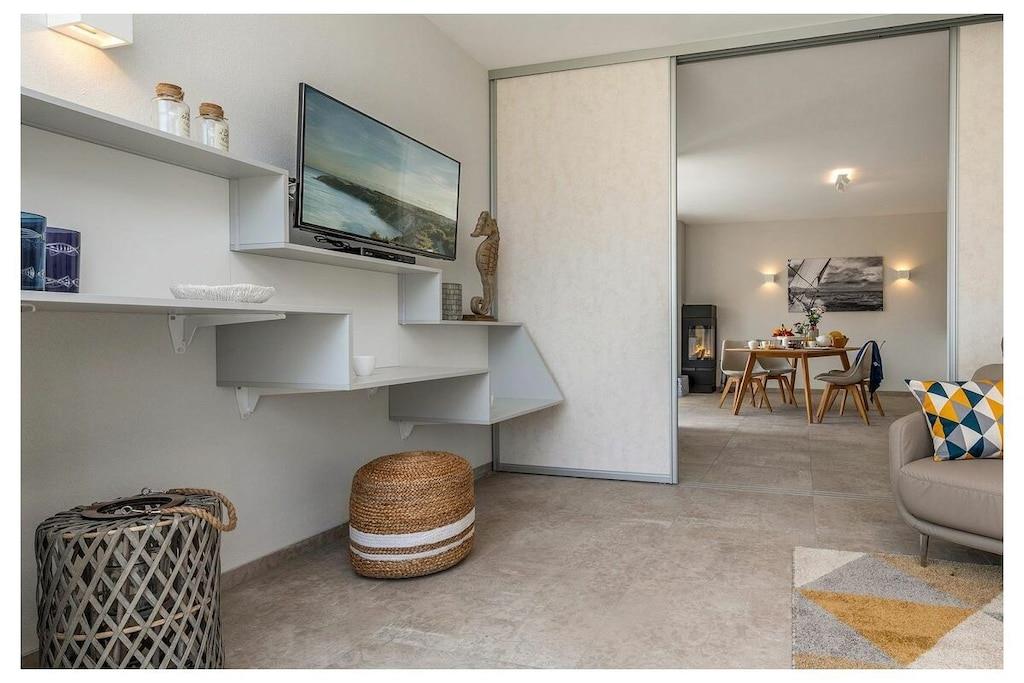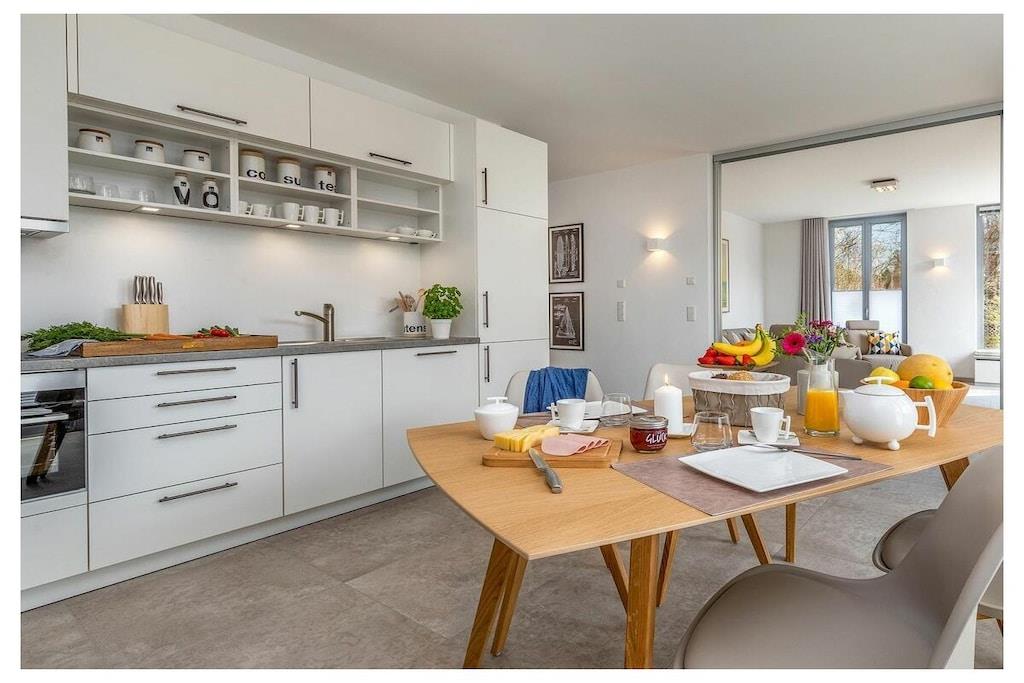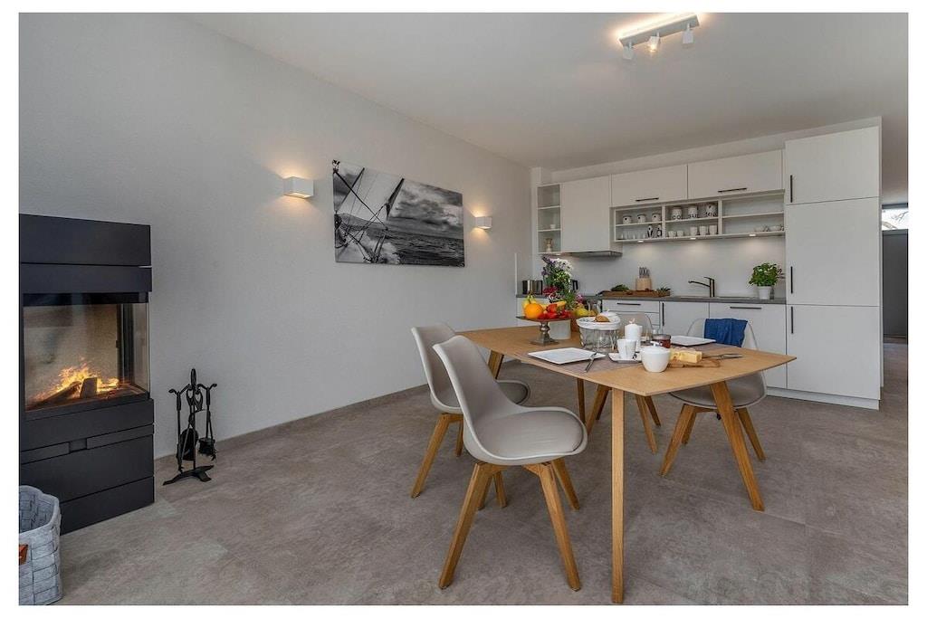 Die Wohnung hat 95 m² groß und bietet Platz für die ganze Familie. Hier können Sie am Kamin entspannen und nach langen Spaziergängen, die Sauna des Hauses nutzen. Im Außenbereich stehen Ihnen gleich 2 Terrassen zur Verfügung. Eine Ost-Terrasse, um in der Sonne zu frühstücken und eine Süd-Terrasse zum gemütlichen Ausklang eines tollen Urlaubstages und gemeinsamen Grillabenden. In diesem Hause gibt es eine zweite Ferienwohnung: ,,Swantow". Bei Bedarf können Sie in diesem Hause sehr entspannt auch mit der Großfamilie Urlaub machen und doch hat jeder seine eigene Wohnung. Schlafzimmer 1: Boxspringbett von 180x200 jeweils mit Fernseher, Wohnzimmer mit Kamin offener Wohnküche, Schlafcouch mit Matratze von 160x200m und Essbereich.