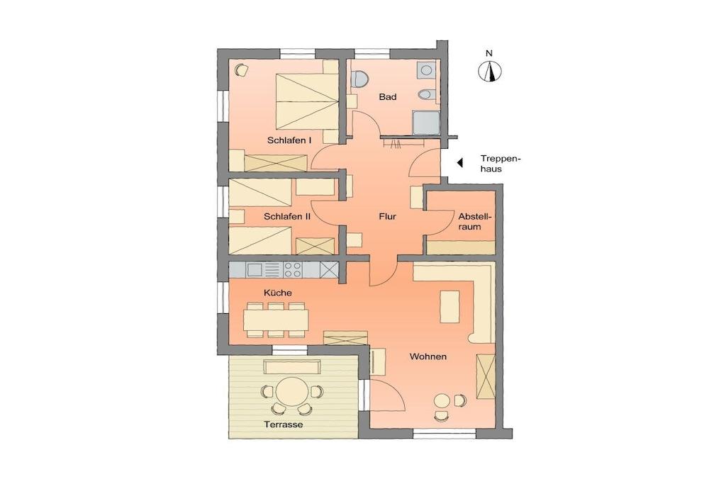, , Küche(, , Esstisch, Kochplatte, Wasserkocher, Toaster, Kaffeemaschine, Backofen, Mikrowelle, Spülmaschine, Kühlschrank, Tiefkühlschrank, Tiefkühlschrank, Fliegenfenster), Wohn-/Schlafzimmer(, , Schlafcouch 1 Pers., TV, Radio, CD-Spieler, Stereoanlage), Schlafzimmer(, , Einzelbett, Einzelbett), Schlafzimmer(, Doppelbett, Doppelbett), Badezimmer(, Toilette, Dusche, Waschbecken), Internet, Waschmaschine, Heizung, Terrasse(Gartenmöbel), Parkplatz, Bügelbrett, Trockenschrank