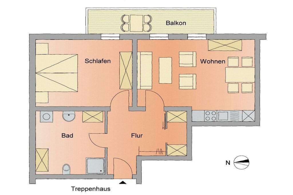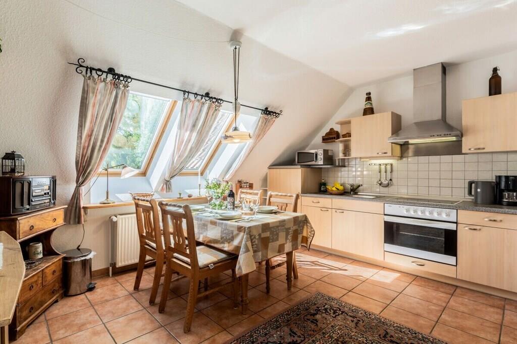 Die 56 m² große Ferienwohnung befindet sich im 1. OG eines ruhig gelegenen Hauses. Sie bietet Platz zum erholen und entspannen für bis zu 4 Personen. Die allergikerfreundliche Nichtraucherwohnung ist geschmackvoll und komfortabel mit Vollholzmöbeln eingerichtet, liebevoll im Landhausstil dekoriert und lädt zum Wohlfühlen ein, zudem bieten Fliegengitter an den Fenster Schutz vor Insekten. Nach einem erholsamen Schlaf in dem bequemen Massivholz-Doppelbett, kann der Morgen mit einem ausgedehnten Frühstück auf dem Balkon in Ostlage beginnen. Die voll ausgestattete Wohnküche mit einer Sitzgruppe im Essbereich und einem gemütlichen Wohnzimmer mit Schlafcouch bietet zu jeder Jahreszeit ein gepflegtes Ferienambiente. An verregneten Abenden kann man vor dem Fernseher im Wohnbereich sowie im Schlafzimmer den Tag ausklingen lassen. Für unsere kleinen Gäste stehen ein Kinderbett und ein Kinderstuhl zur Verfügung.