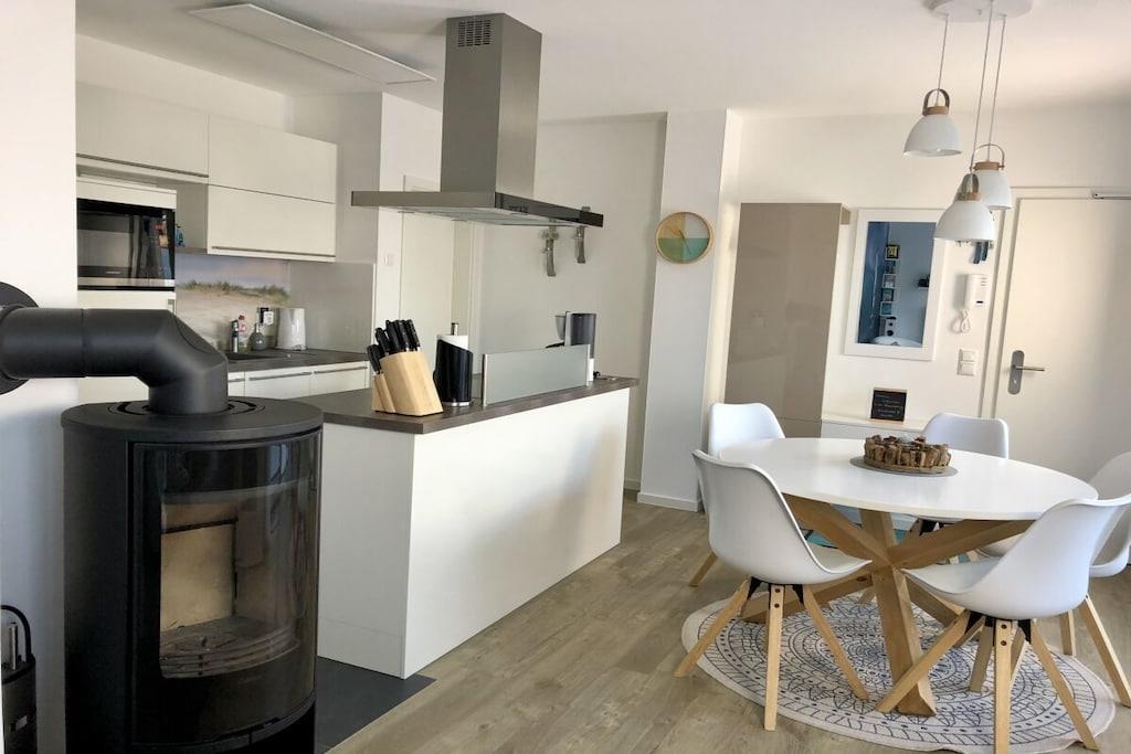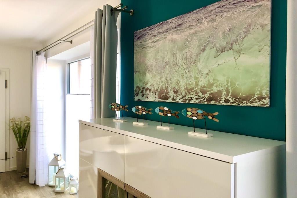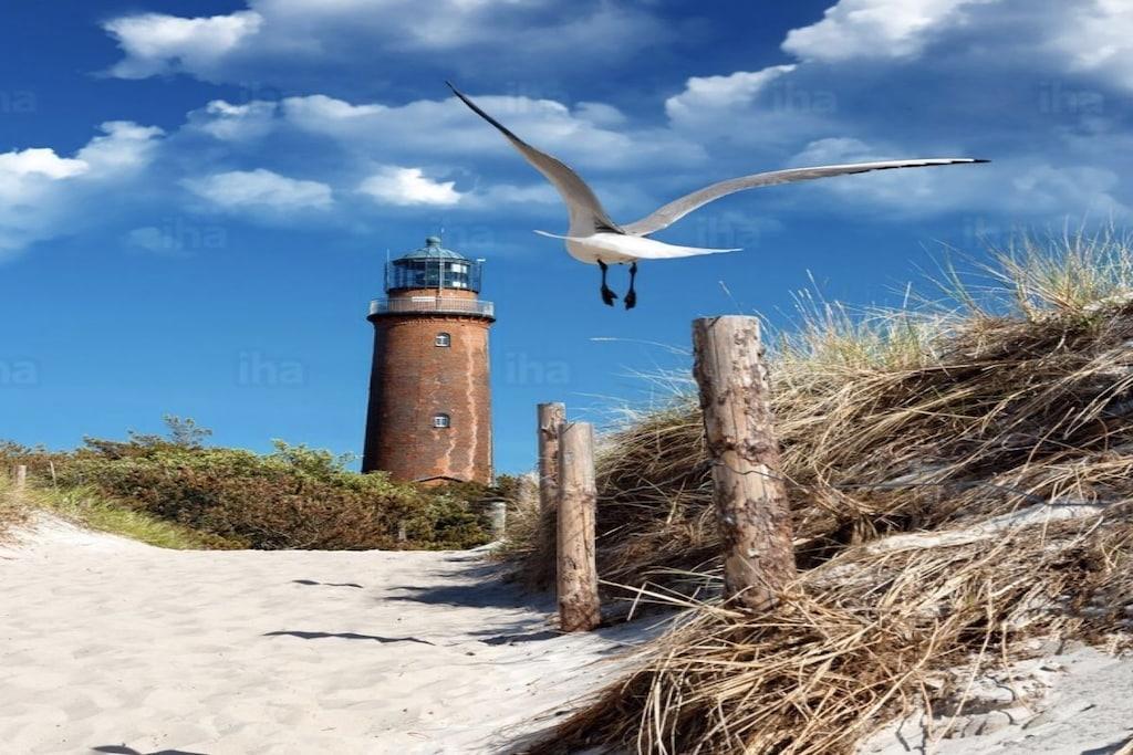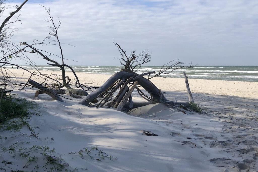 Die Ferienwohnung „Seaside“ liegt ruhig und trotzdem im Zentrum von Prerow in gerader Linie Zum Strand und zur Seebrücke sind es 600 Meter.