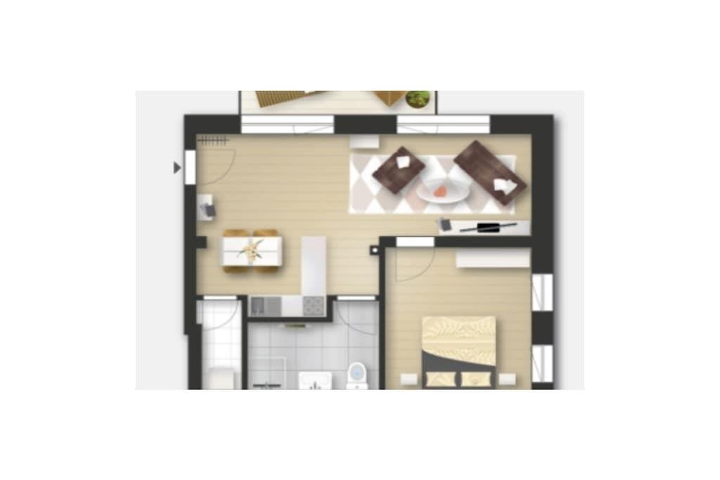 Wohnfläche 61 m²