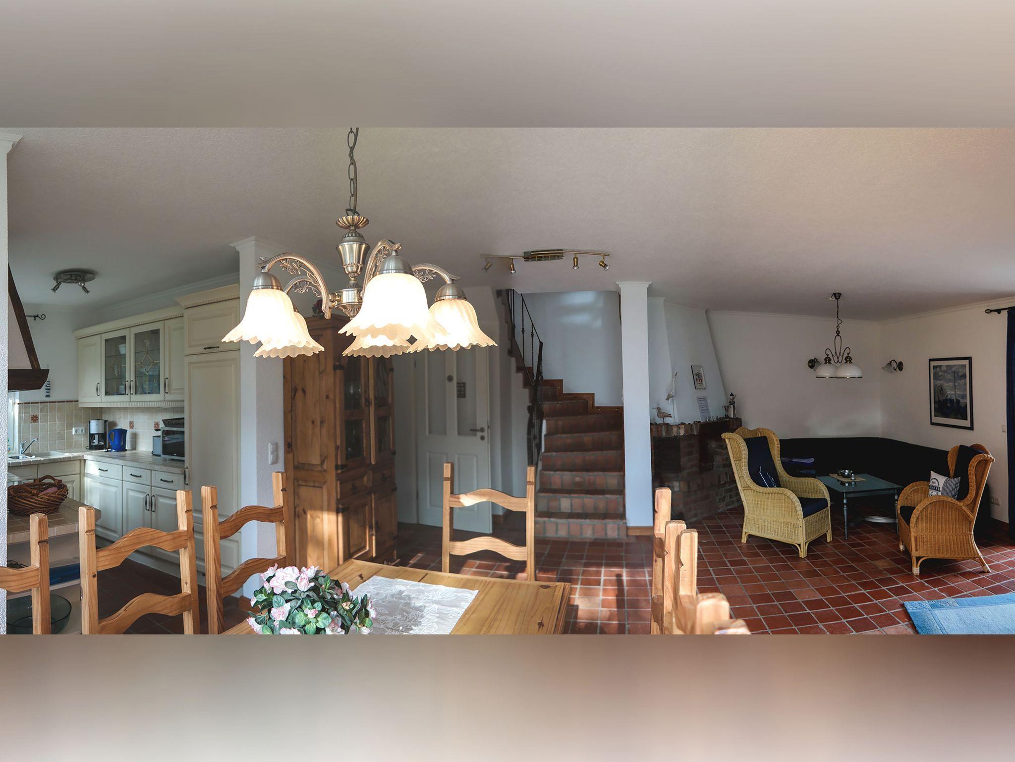 Das Haus mit 110qm Größe ist ideal für 2-7 Pers. ( inkl. Kleinkind ) sowohl für Großfamilien oder zwei befreundete Familien ideal geeignet. Im Wohnzimmer befindet sich eine sehr gemütliche Sofaecke in echtem Leder. Ein Flachbild - Fernseher sorgt für einen schönen Ausklang eines Ostsee -Tages im Kreise der mitreisenden Familie und der Freunde. Hier können Sie sich ausruhen, sich zurücklehnen und die Abendstimmung genießen.