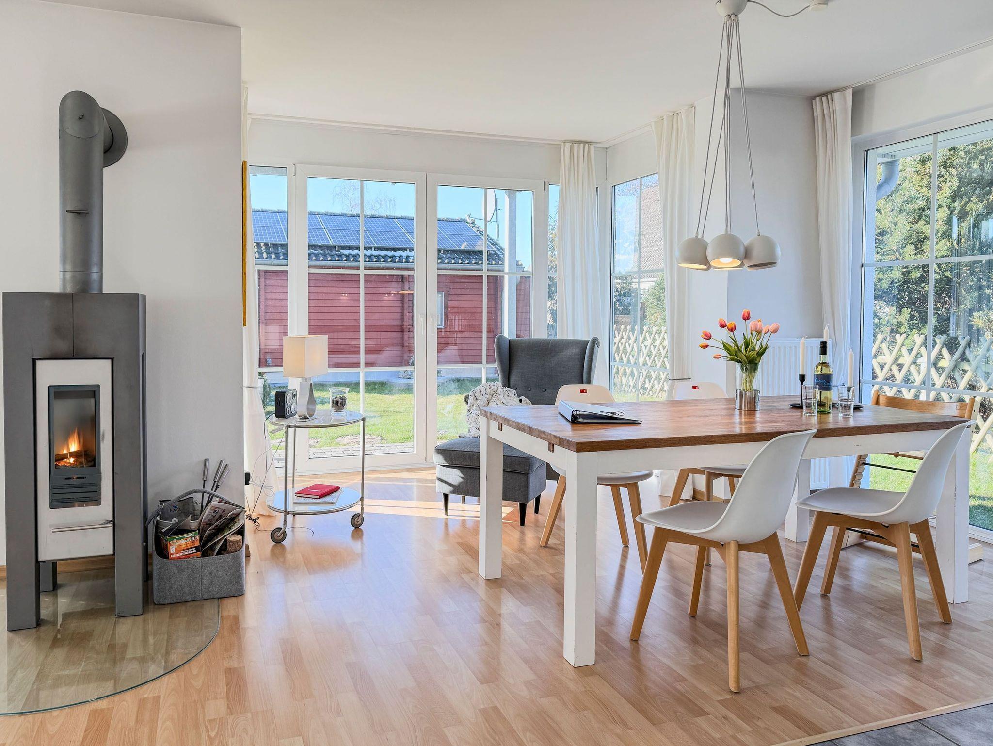 Die Ferienwohnung Bi de Wisch in Prerow bietet modernen Komfort und gemütliches Ambiente mit Kamin und Terrasse.