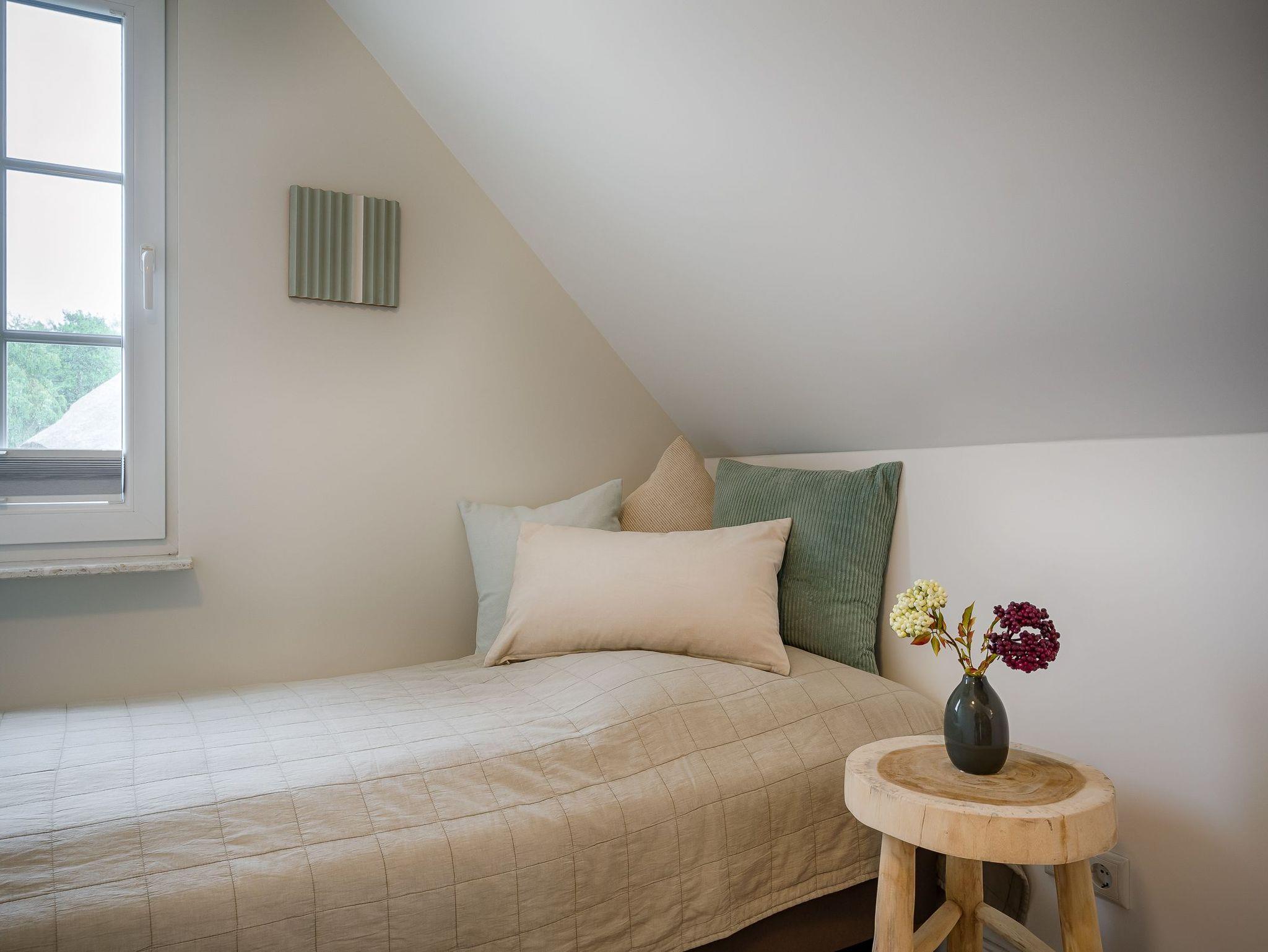 alle Schlafzimmer sind ausgestattet mit Fliegenschutzgittern, individuell einstellbaren Verdunklungsplatten (Gaubenfenster), Verdunklungsplissees, Winneo Bio-Vinyl Boden in Dielenoptik, Fußbodenheizung