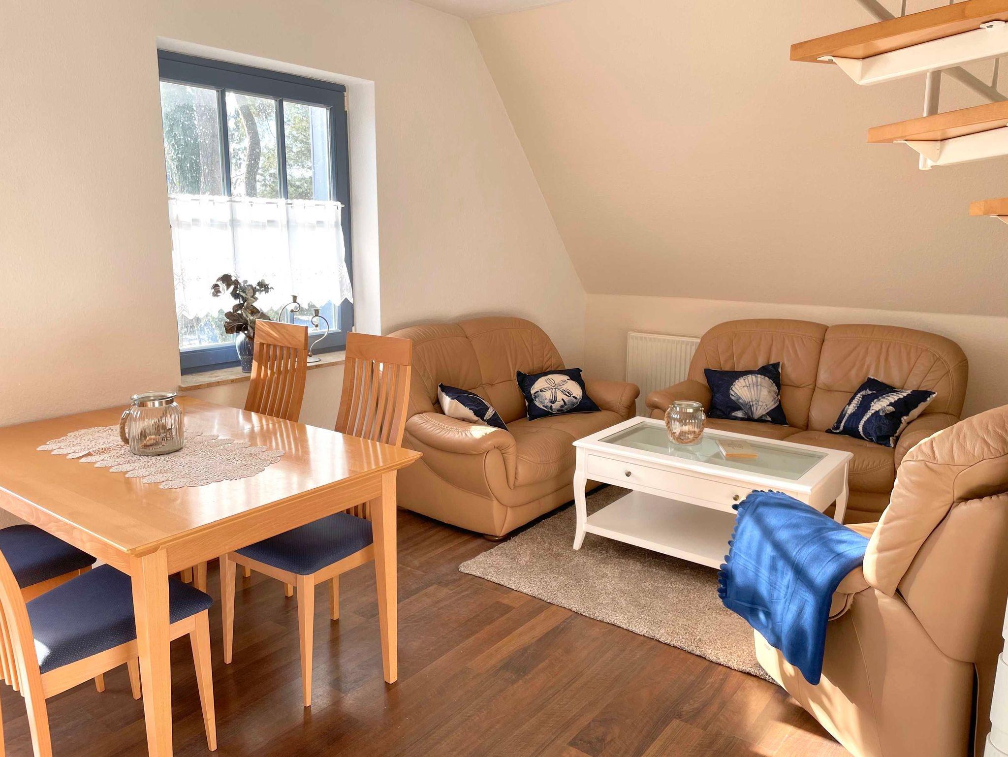 Die Ferienwohnung Seeigel in Prerow bietet auf 2 Etagen Komfort mit 3 Schlafzimmern, 2 Bädern, Balkon und kostenfreiem WLAN.