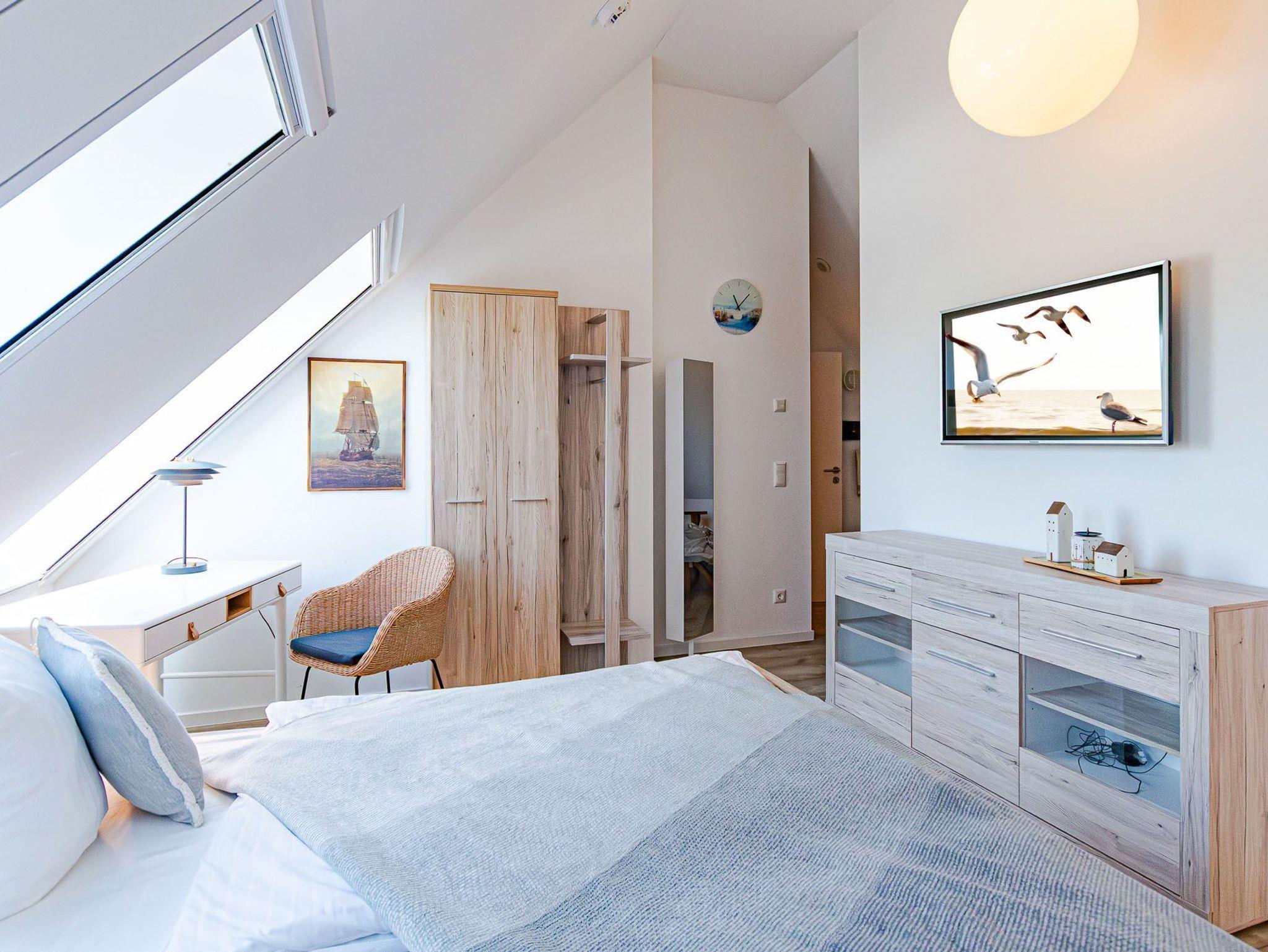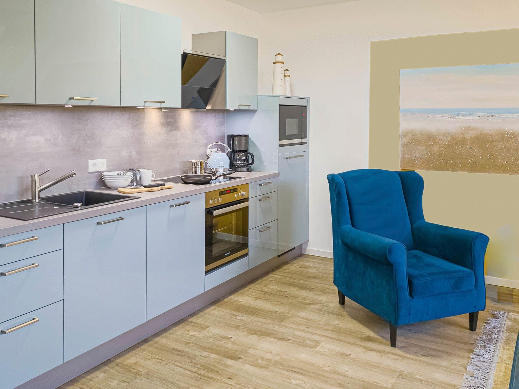 Die Ferienwohnung Tordalk, Whg. 06 empfängt Sie mit einer harmonischen Kombination aus modernem Komfort und maritimem Ambiente. Der helle Wohnbereich mit Kamin lädt zu entspannten Stunden ein, während die voll ausgestattete Küche keine Wünsche offenlässt. Genießen Sie Ihre Mahlzeiten auf dem westlich ausgerichteten Balkon und lassen Sie den Tag in gemütlicher Atmosphäre ausklingen. Die modernen Badezimmer und die komfortablen Schlafzimmer bieten zusätzlichen Komfort für erholsame Nächte.