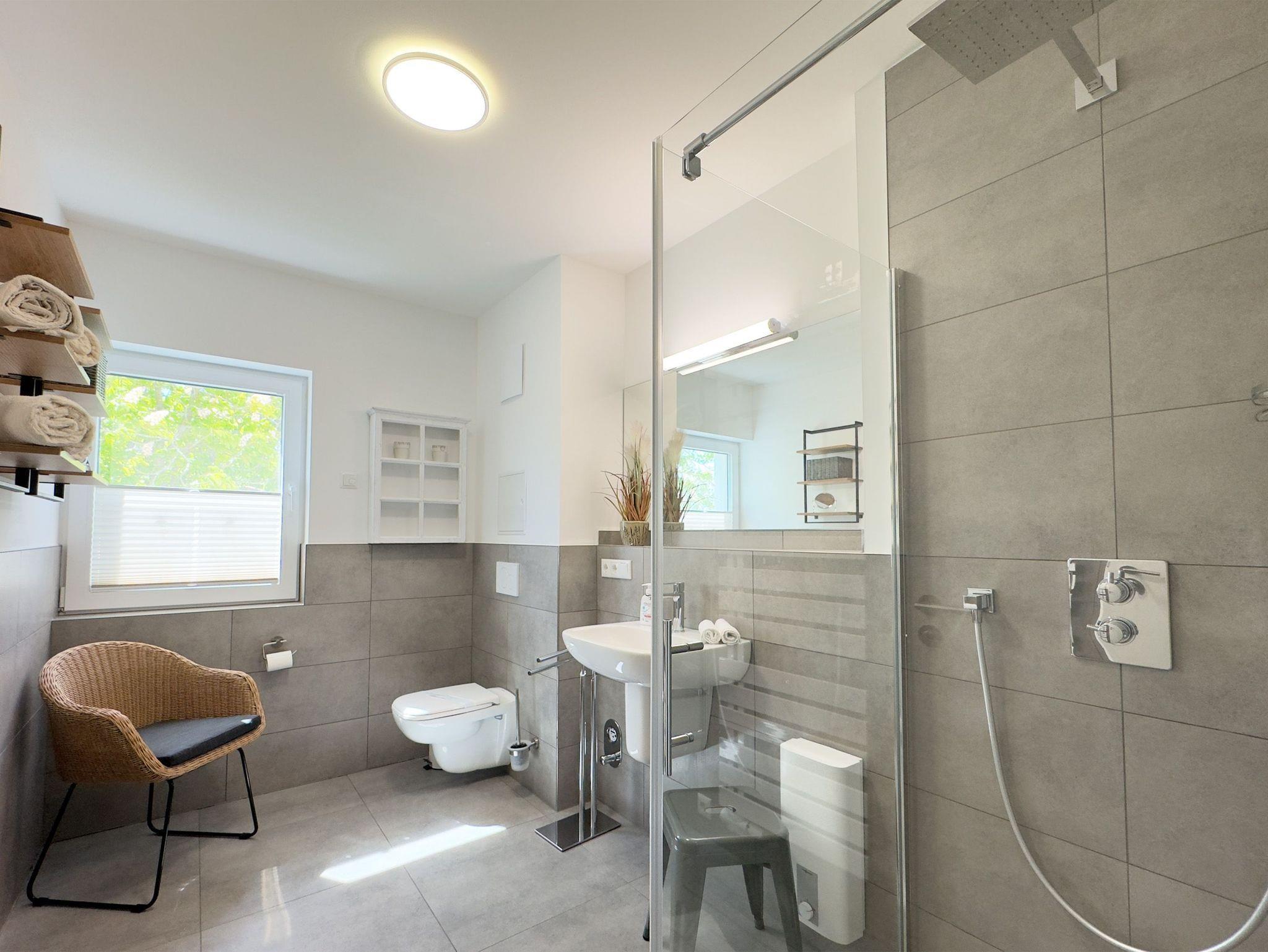 • Badezimmer: Fußbodenheizung, ebenerdige Dusche und eine zusätzliche Dusche für noch mehr Komfort.