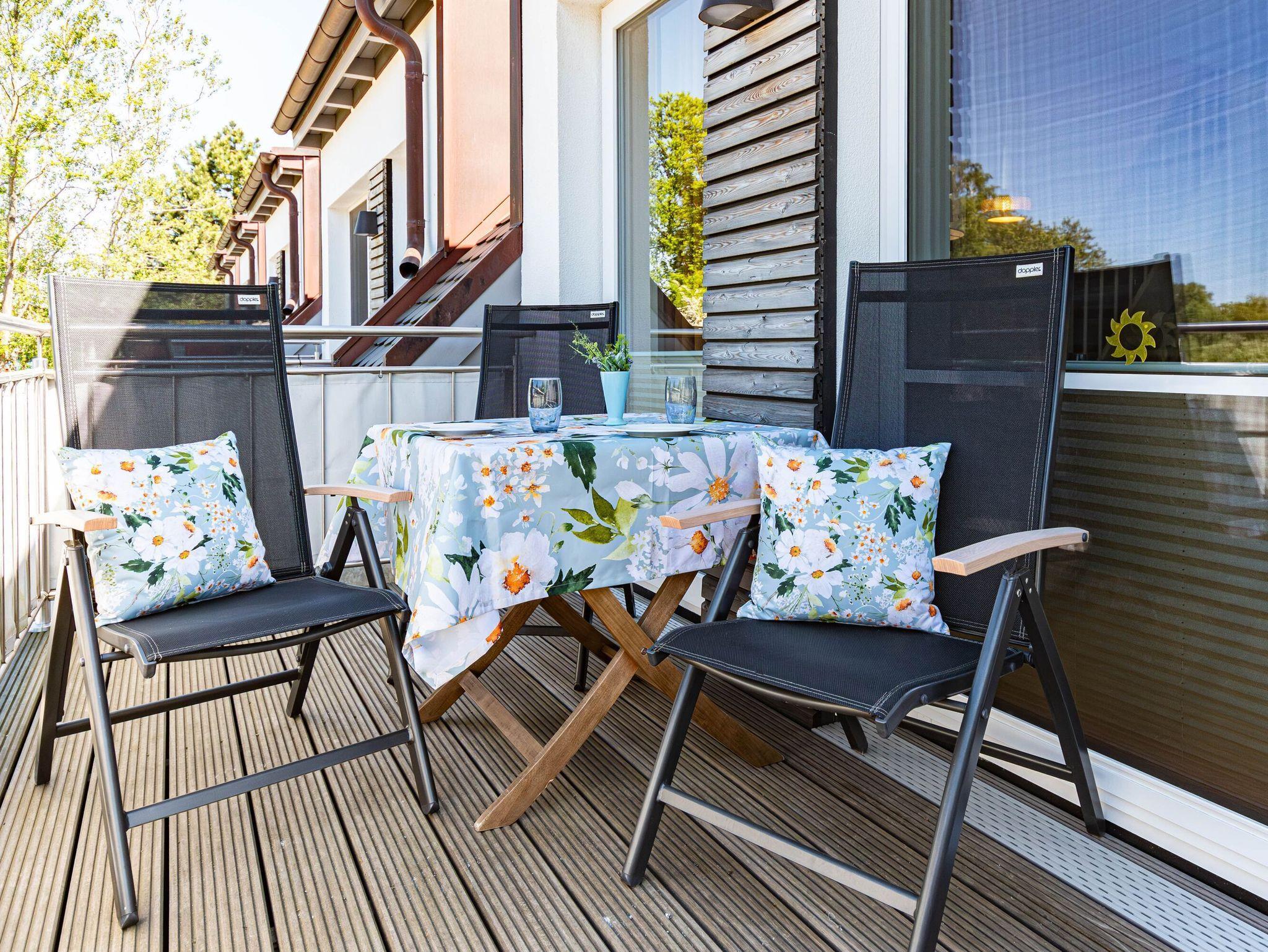 • Balkon: Westbalkon ausgestattet mit hochwertigen Balkonmöbeln und Sonnenschirm perfekt, um die frische Ostseeluft zu genießen.