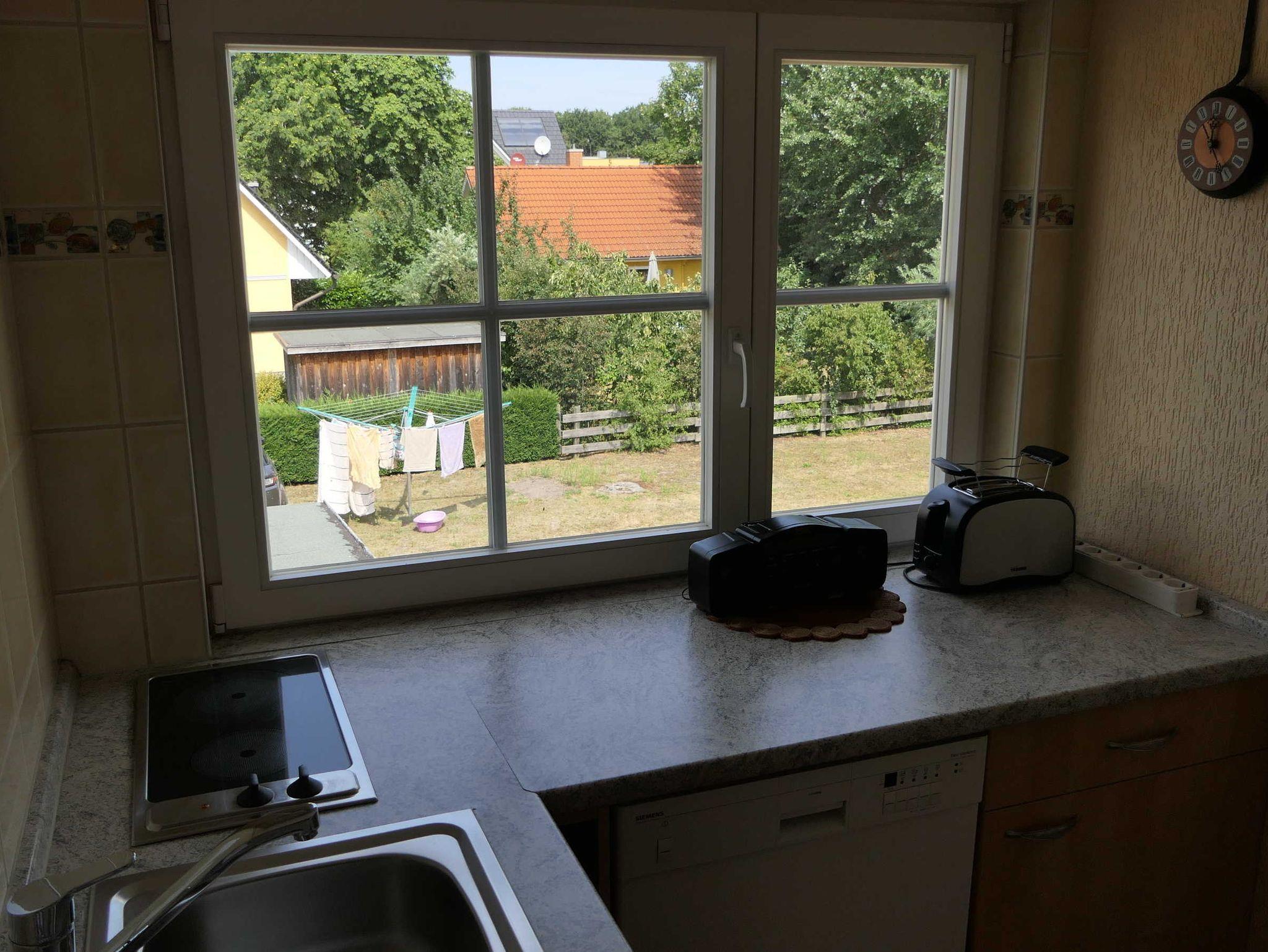 Die renovierte Ferienwohnung befindet sich im Obergeschoss des Hauses. Die Ferienwohnung besteht aus zwei Zimmern (einem Wohn-und einem Schlafzimmer), einer offenen Küchenecke mit Kühlschrank, Kochgelegenheit, Geschirr und Kochgeschirr. Zwischen den beiden Zimmern befindet sich die Sitz- und Essecke. Das Bad mit Dusche ist modern ausgestattet.