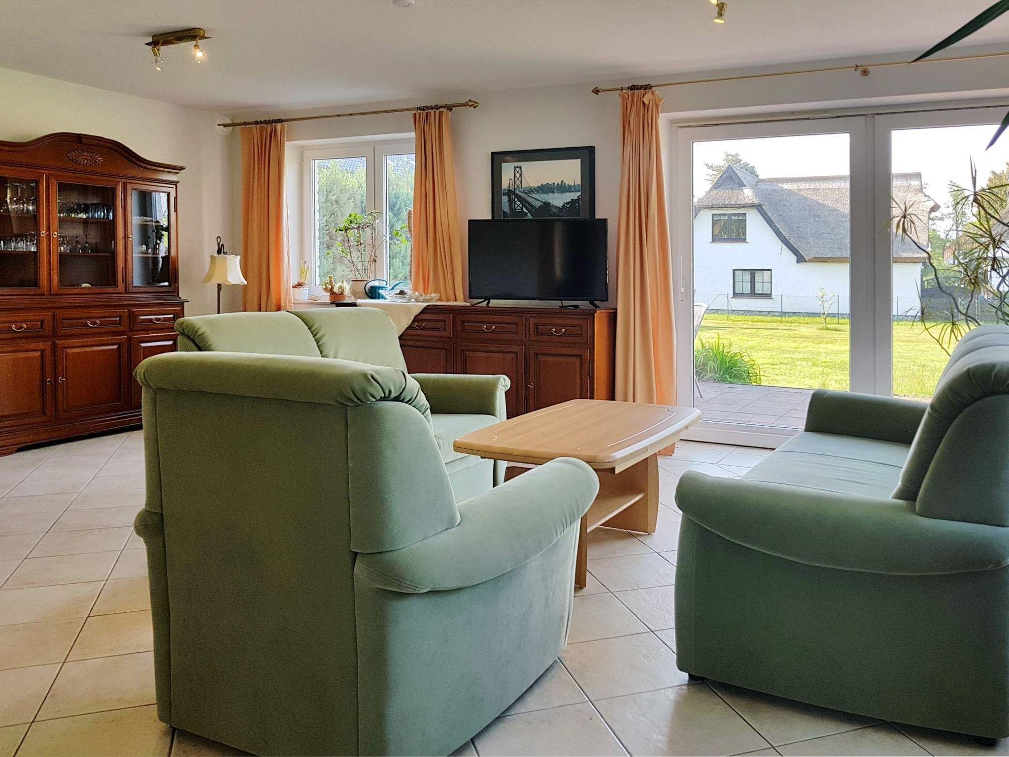 Komfortable Ferienwohnung in Prerow mit Kamin, großer Terrasse, Garten und Spielplatz für Kinder.