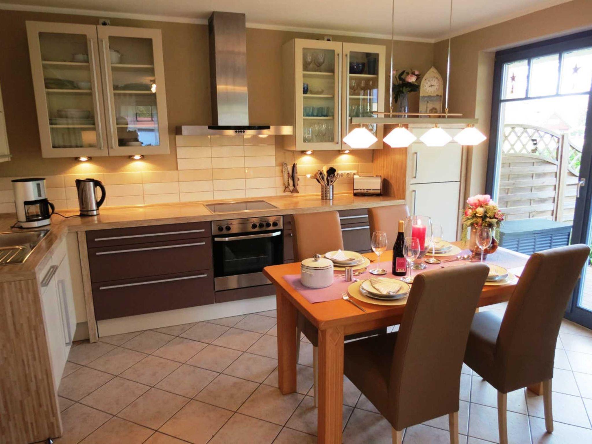 Unsere exquisite Ferienwohnung ist für 4 Personen + Kleinkind exklusiv und liebevoll eingerichtet. (Wohnungsgröße: 68qm) Sie befindet sich im Erdgeschoss mit großer Südterrasse und eigenem Garten mit unverbautem Blick. Es stehen Ihnen 2 Schlafzimmer, ein Bad mit Dusche sowie ein Wohnraum mit Küchenzeile zur Verfügung. Die Küche ist mit Herd und Backofen, Kühlschrank und Geschirrspüler ausgestattet. Fernseher und Stereoanlage sind ebenfalls vorhanden.