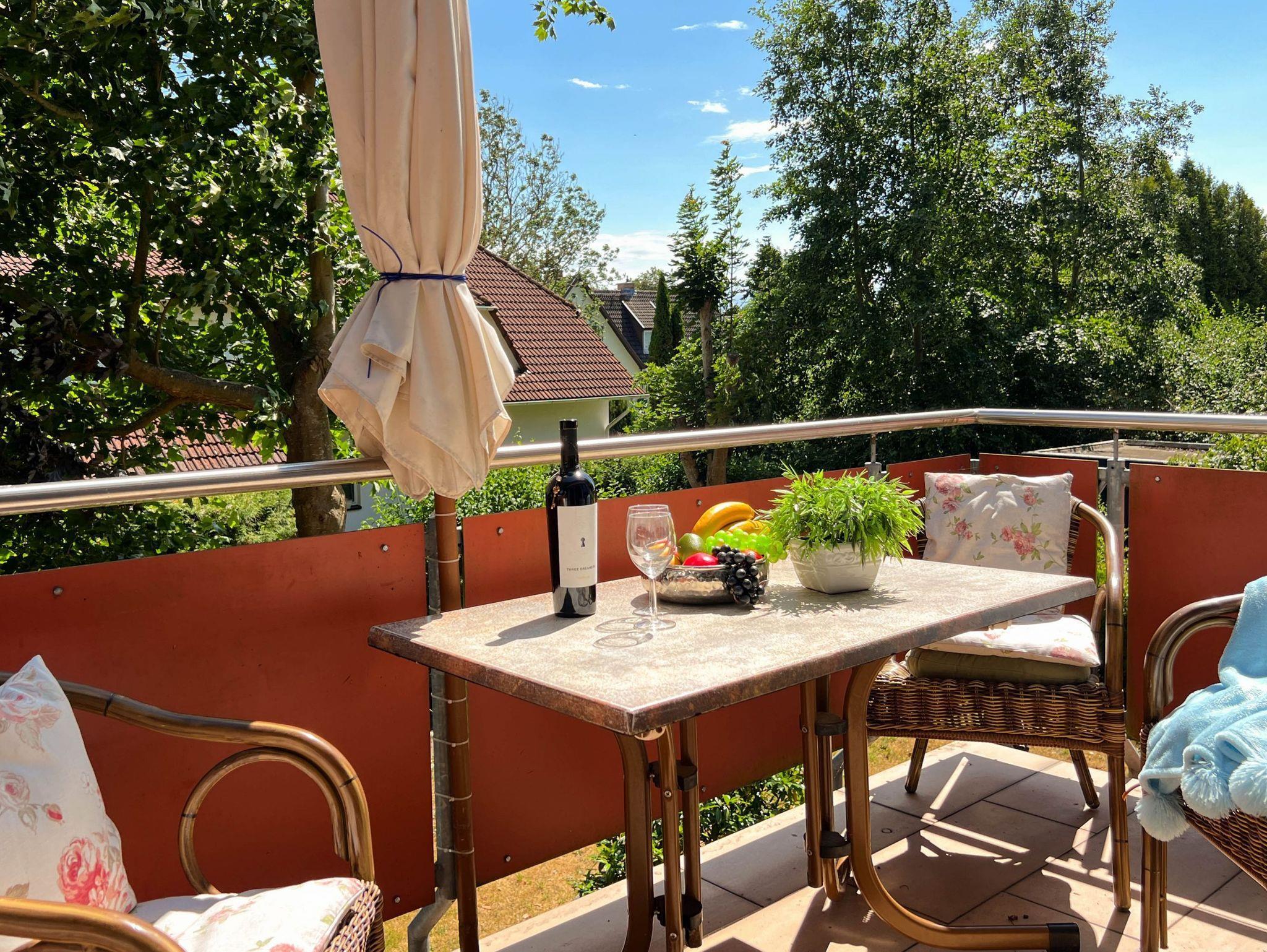 • Außenbereich: Terrasse und Balkon mit Gartenmöbeln und Blick ins Grüne, ideal zum Entspannen.