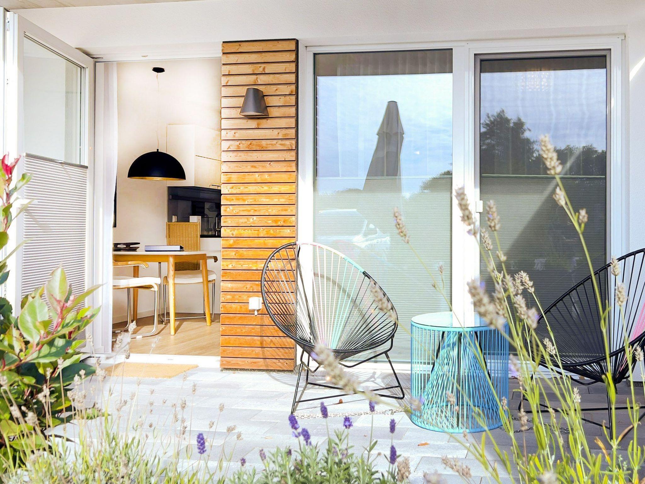 • Terrasse: Westlich ausgerichtet mit Gartenmöbeln, ideal zum Entspannen und Genießen des milden Ostseeklimas