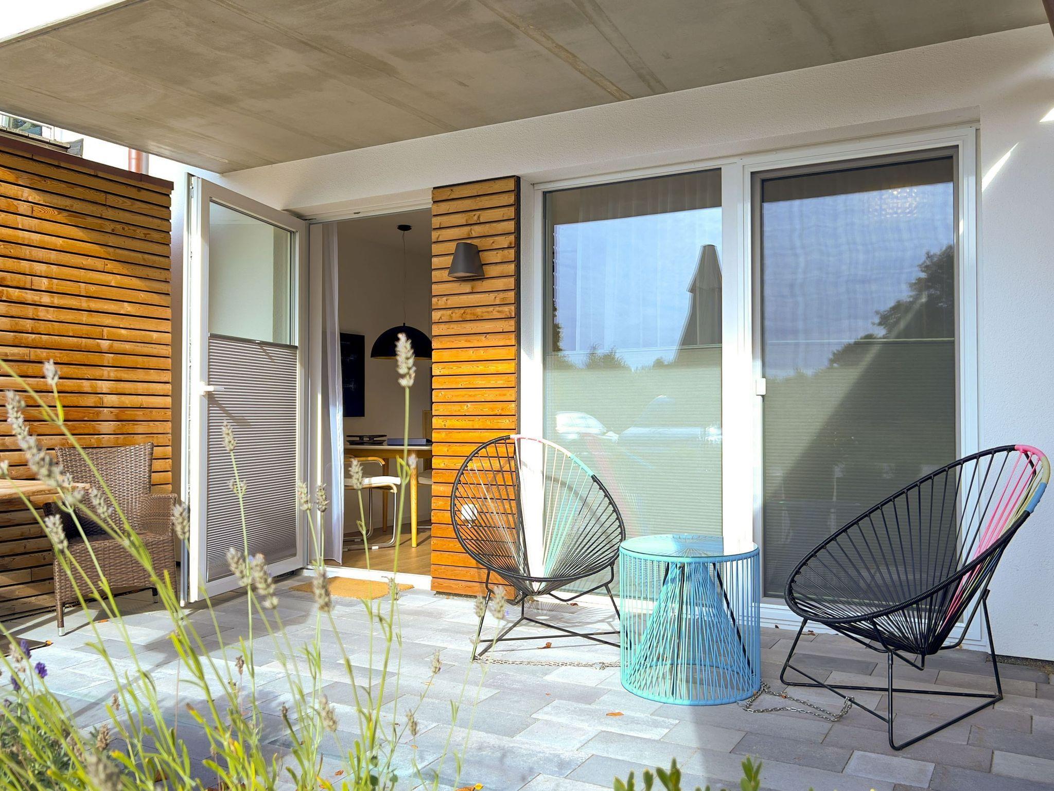 Moderne Erdgeschosswohnung Tordalk 03 in Prerow mit Kamin, Terrasse und maritimem Flair für entspannte Urlaubstage.