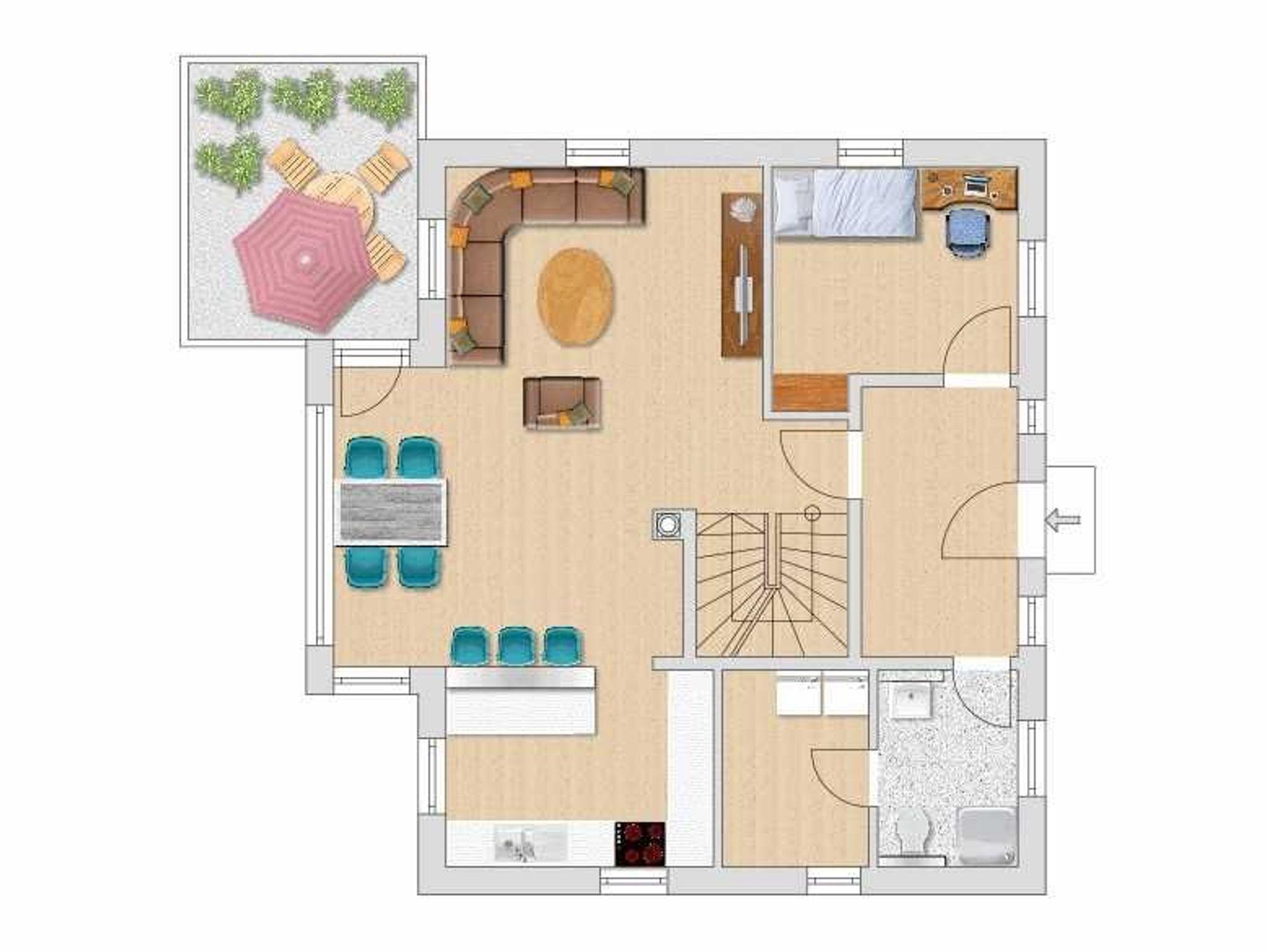 Allgemein:Einfamilienhaus, 124 qm Wohnfläche, 5 Zimmer, 4 Schlafzimmer, 2 Bäder, 405 qm Grundstück eingezäunt, Gasbrennwerttherme, Solare Warmwasserbereitung, Fußbodenheizung in allen Räumen, Kaminofen, Sauna, Waschmaschine, Trockner, 2 PKW Stellplätze, Gartenhaus, 37 qm Terrasse (Südausrichtung), Internet, Sat-TV, Darßtypische Architektur mit Fledermausgaube, Darßveranda, Süd-Balkon.