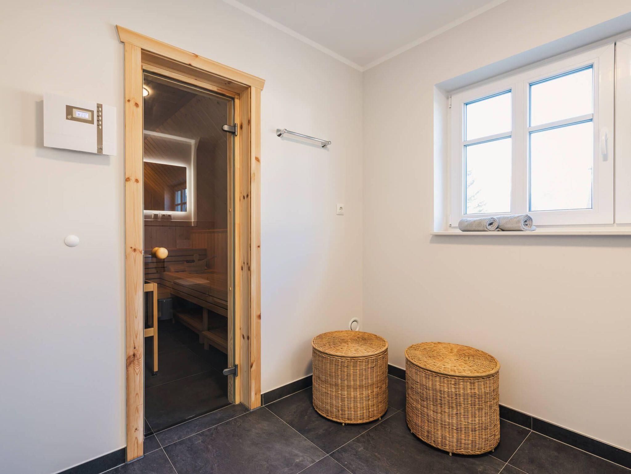 Nachhaltiges Ferienhaus Mien Duuvke in Prerow mit Sauna, eigenem Arbeitszimmer und Elektroauto-Ladestation.