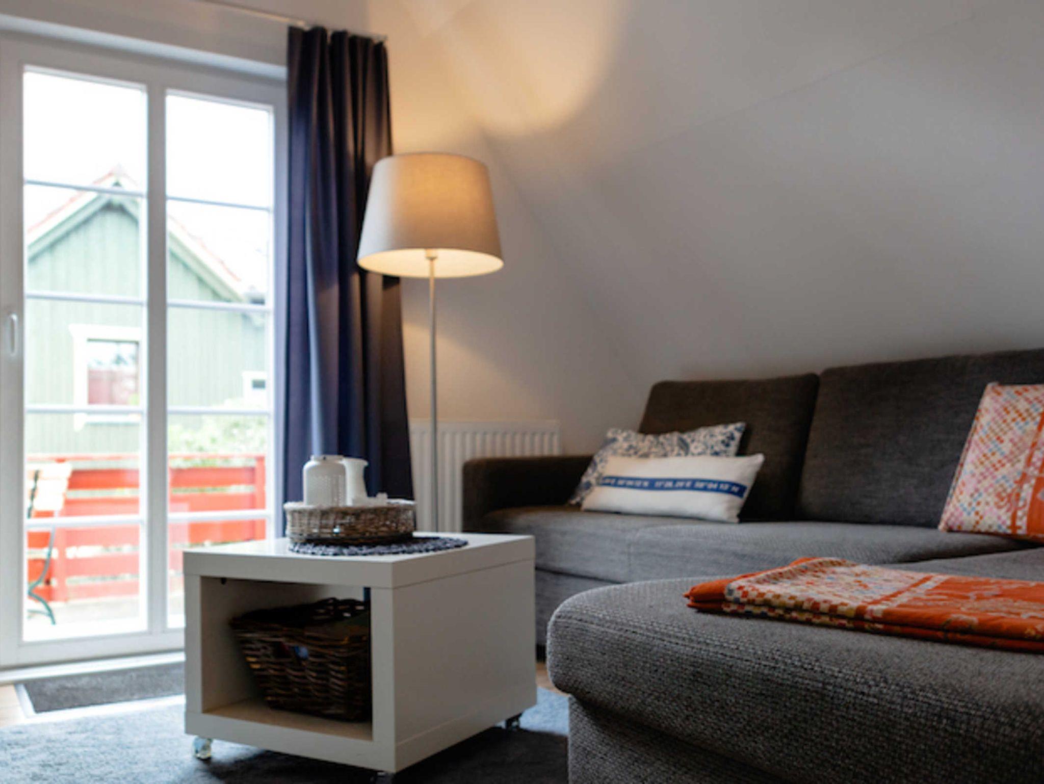 Im gemütlichen Wohn-/Schlafbereich bietet Ihnen eine Schlafcouch mit Federkernmatratze (180/200 cm) ein vollwertiges Bett für 2 Personen.