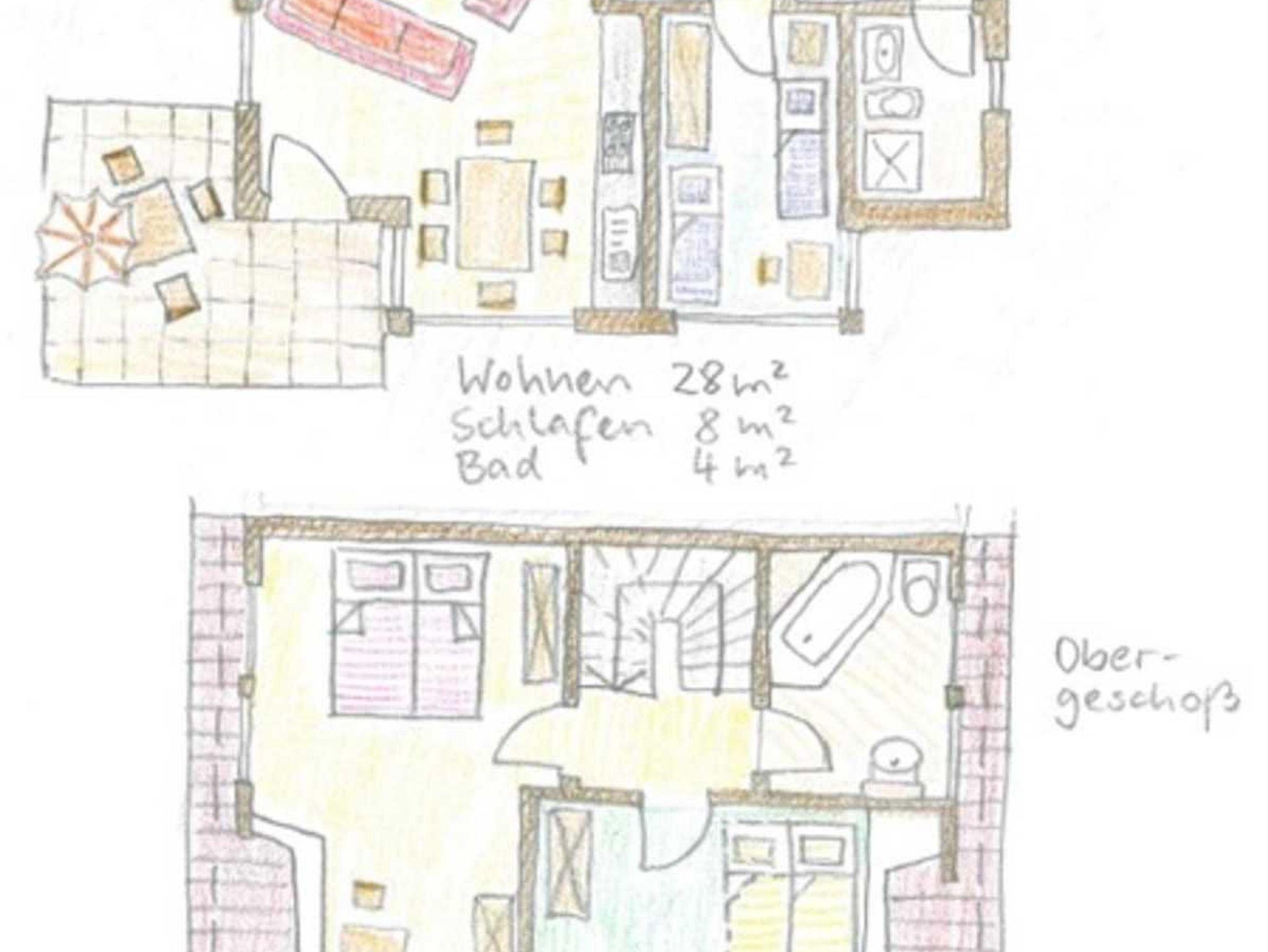 Im Obergeschoß, erreichbar über eine Innentreppe, befinden sich: