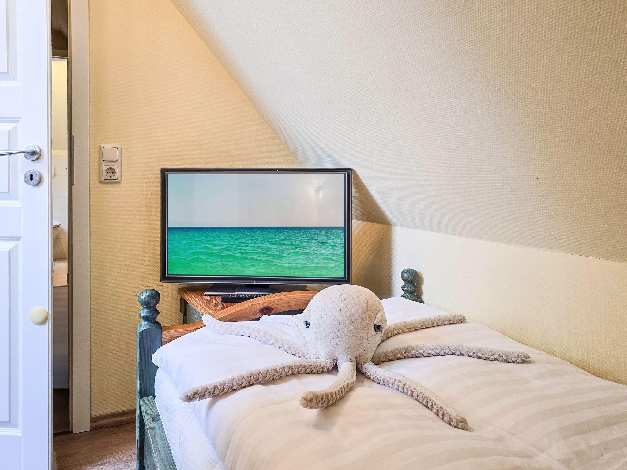 Die Ferienwohnung Seeluft empfängt Sie mit einer harmonischen Kombination aus modernem Komfort und gemütlichem Ambiente. Der großzügige Wohnbereich mit Kamin lädt zu entspannten Abenden ein, während die voll ausgestattete Küche keine Wünsche offenlässt. Genießen Sie Ihre Mahlzeiten im Essbereich oder auf dem Balkon mit Gartenblick. Die beiden Schlafzimmer sorgen für erholsamen Schlaf, und die eigene Sauna bietet zusätzliche Entspannung nach einem aktiven Tag.