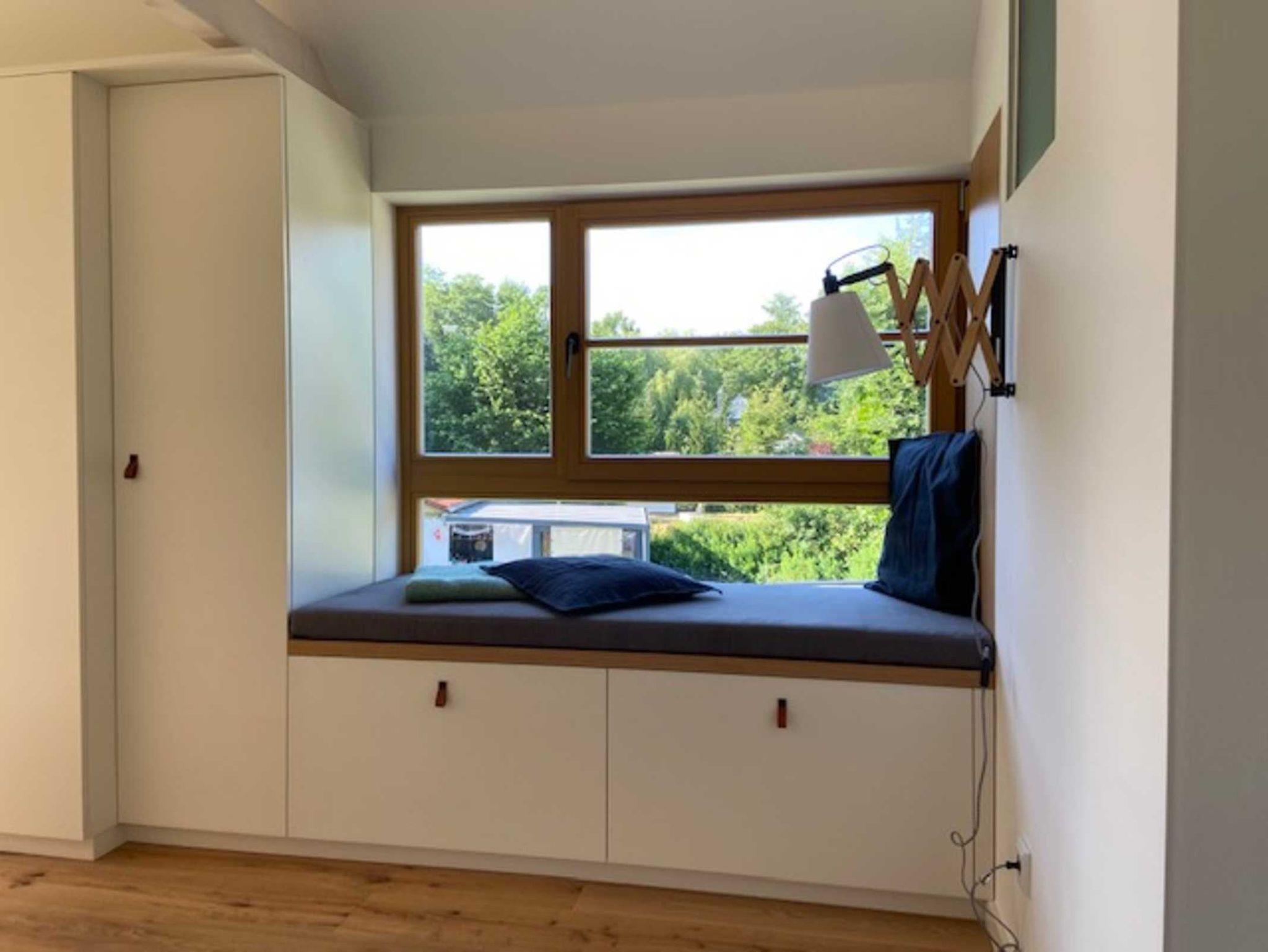 Die 2 Schlafzimmer im Obergeschoß werden ergänzt von einem riesigen Einbauschrank (3,5 Meter), der viel Platz für Ihre persönlichen Sachen bietet. In den Schlafzimmern befinden sich jeweils Doppelbetten (Boxspring 180x200 und Federkern (195x200). Ein gemütliches Sitzfenster wird garantiert auch einer Ihrer Lieblingsplätze. Das Bad im Obergeschoß bietet ein tolles Duscherlebnis mit einer Raindance-Dusche und ist zeitgemäß ausgestattet. Ein Besucher-WC im Erdgeschoss ergänzt die durchdachte Ausstattung des Hauses.