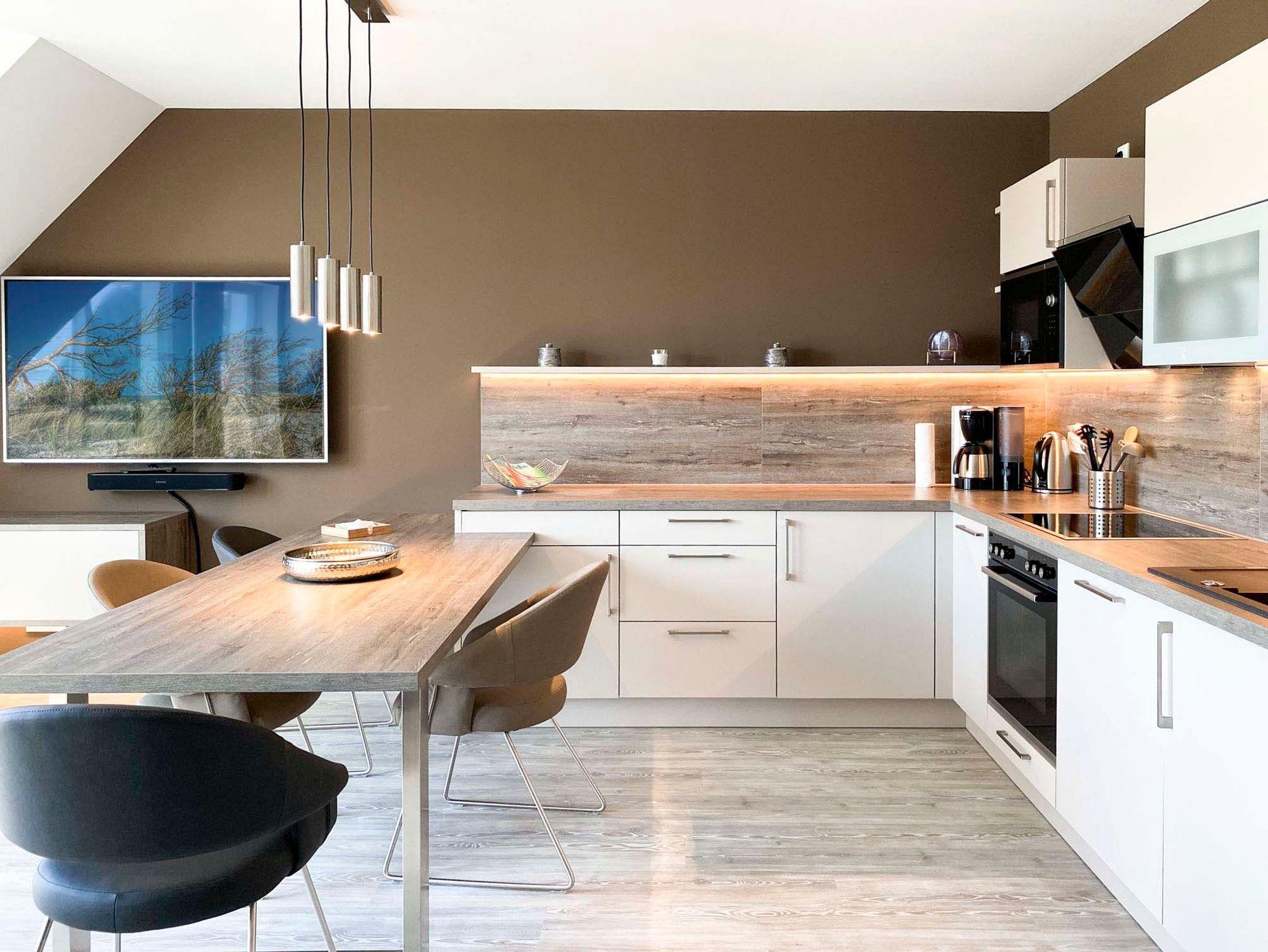 Die Ferienwohnung Tordalk, Whg. 10 empfängt Sie mit einer harmonischen Kombination aus modernem Komfort und maritimem Ambiente. Der helle Wohnbereich mit Kamin lädt zu entspannten Stunden ein, während die voll ausgestattete Küche keine Wünsche offenlässt. Genießen Sie Ihre Mahlzeiten auf dem westlich ausgerichteten Balkon und lassen Sie den Tag in gemütlicher Atmosphäre ausklingen. Die modernen Badezimmer und die komfortablen Schlafzimmer bieten zusätzlichen Komfort für erholsame Nächte.