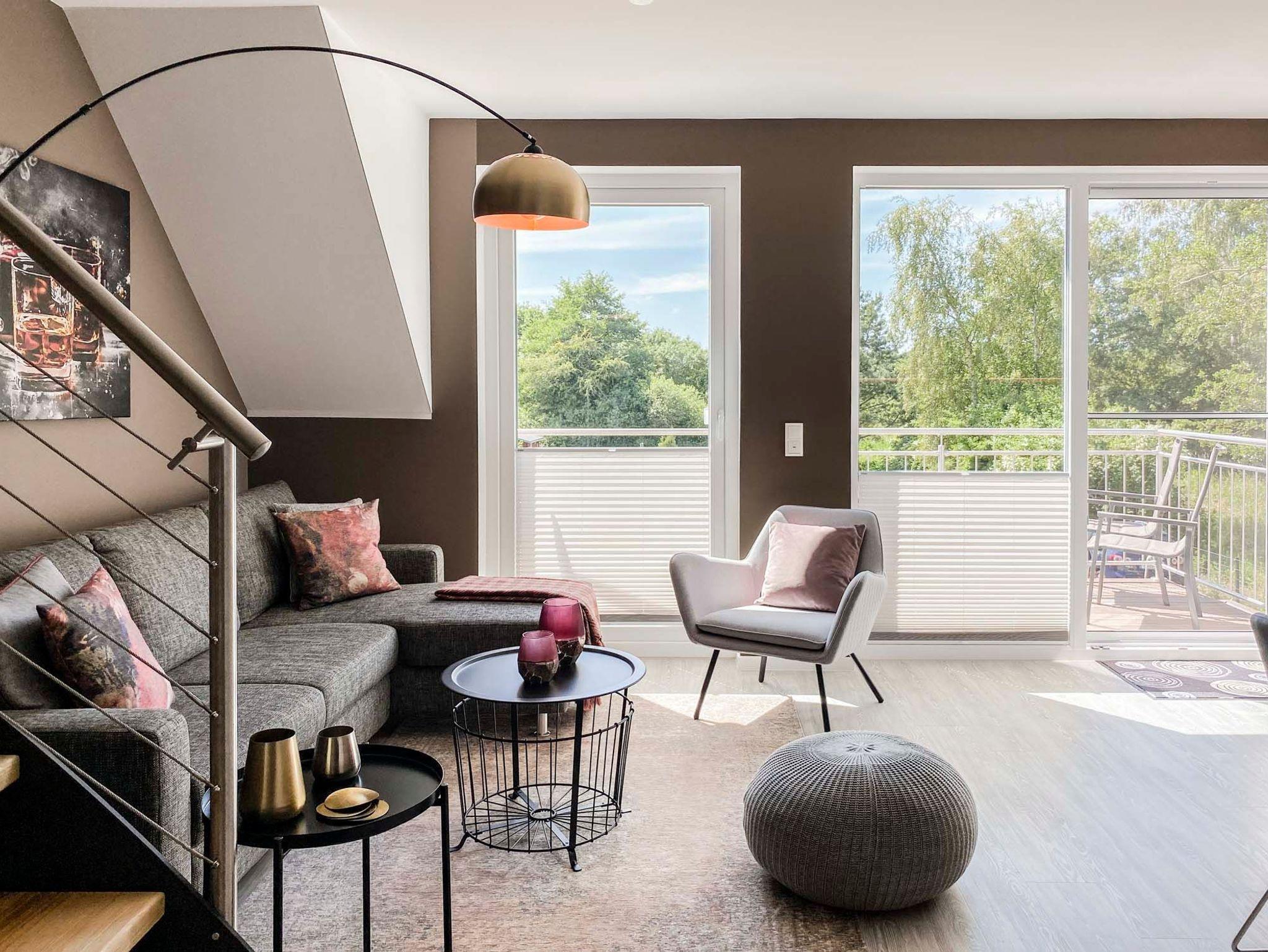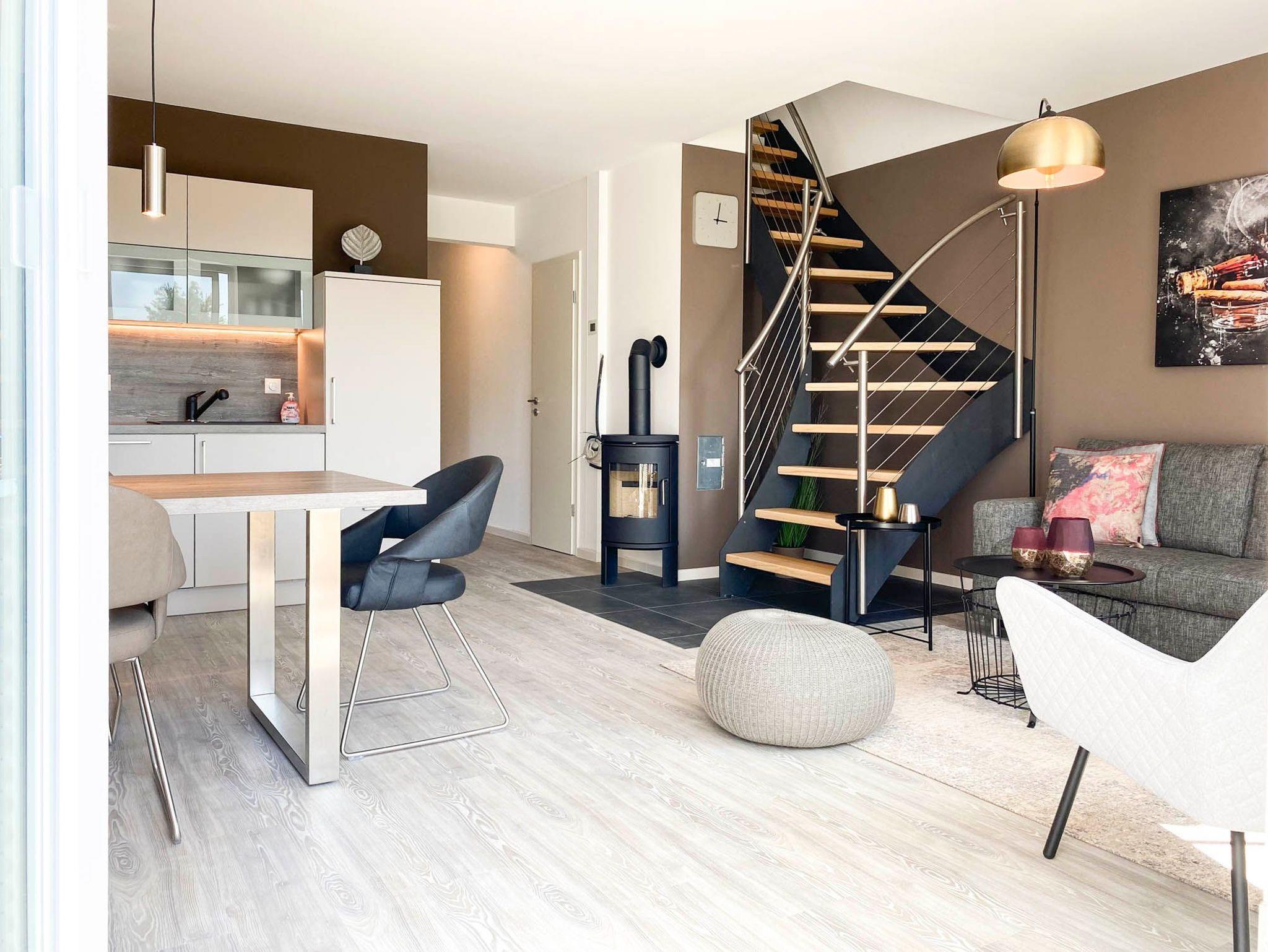 Stilvolle Maisonette-Ferienwohnung mit Kamin, Balkon und Sauna in zentraler Lage von Prerow an der Ostsee.