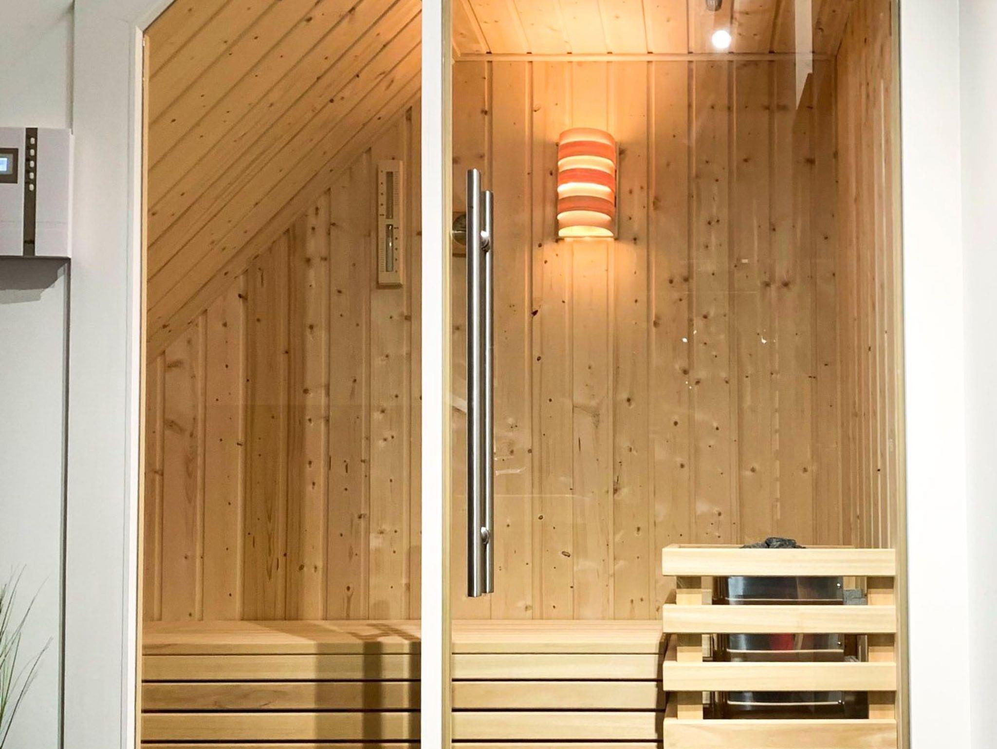• Badezimmer: Zwei moderne Bäder mit ebenerdigen Duschen, Handtuchheizung und Fußbodenheizung; zusätzlich eigene Sauna/Infrarot für Wellnessmomente