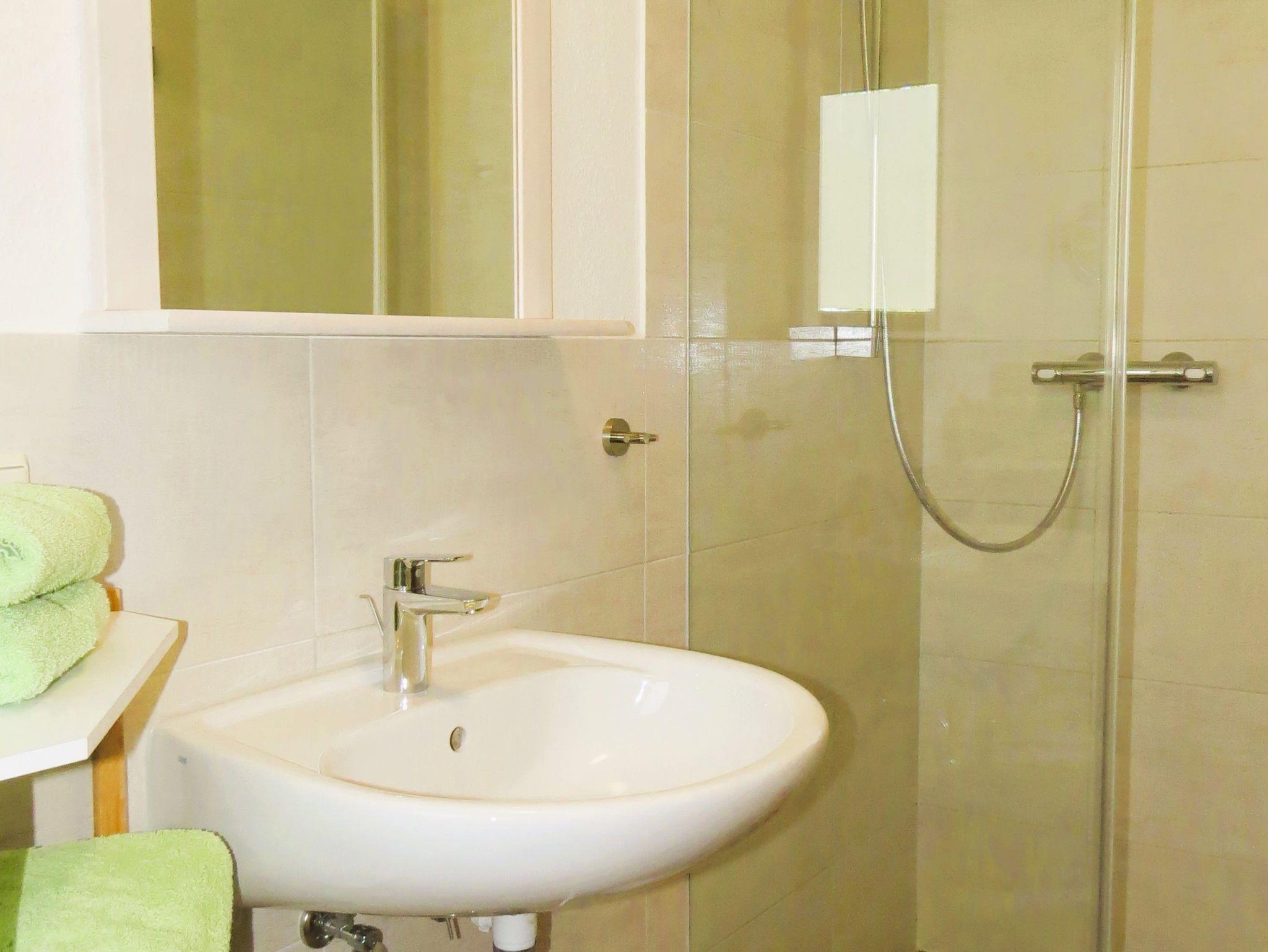 Das neu renovierte Bad ist mit einer großzügigen Dusche und WC ausgestattet. Für Ihre Wäsche steht Ihnen eine Waschmaschine zur Verfügung.