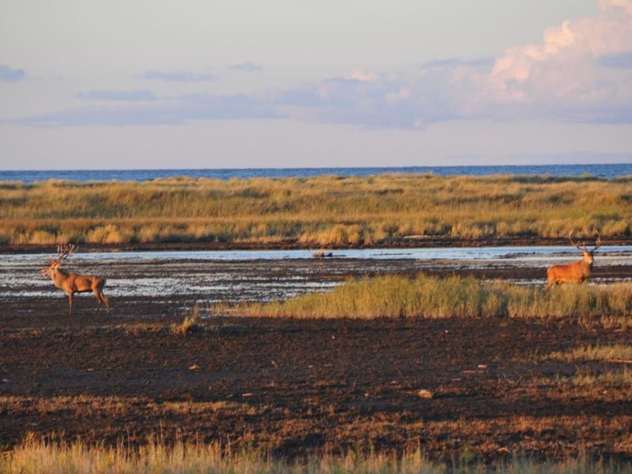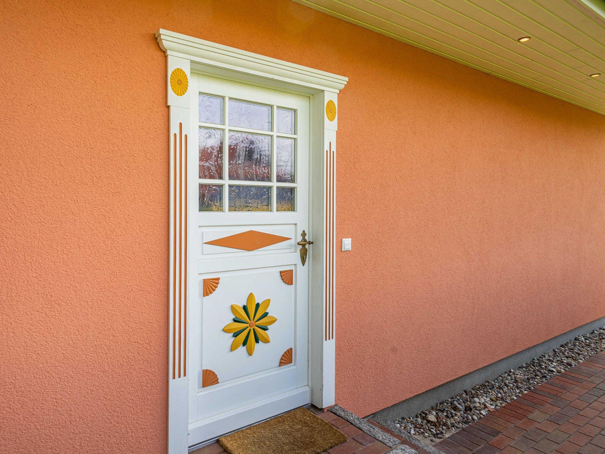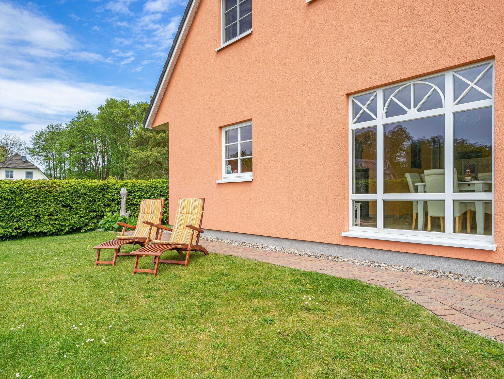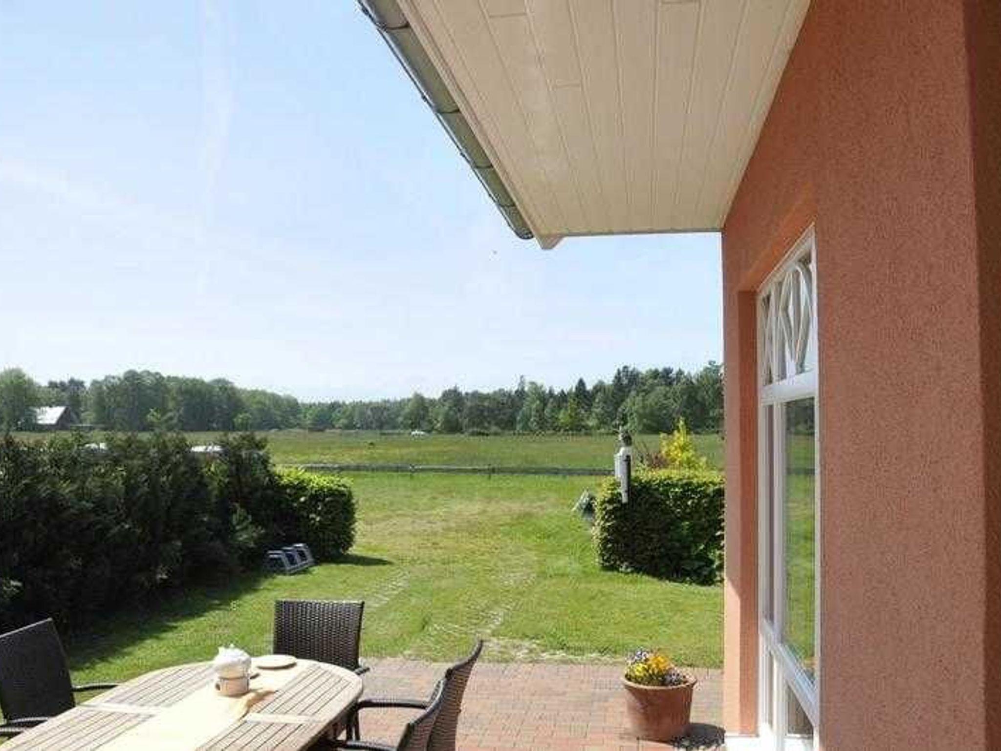 Das exklusive Ferienhaus erwartet seine Gäste auf einem ruhig gelegenen Grundstück, am Rande einer Wiese, mit traumhaftem, freiem Blick über die Wiese zum Rand des Darßer Waldes.