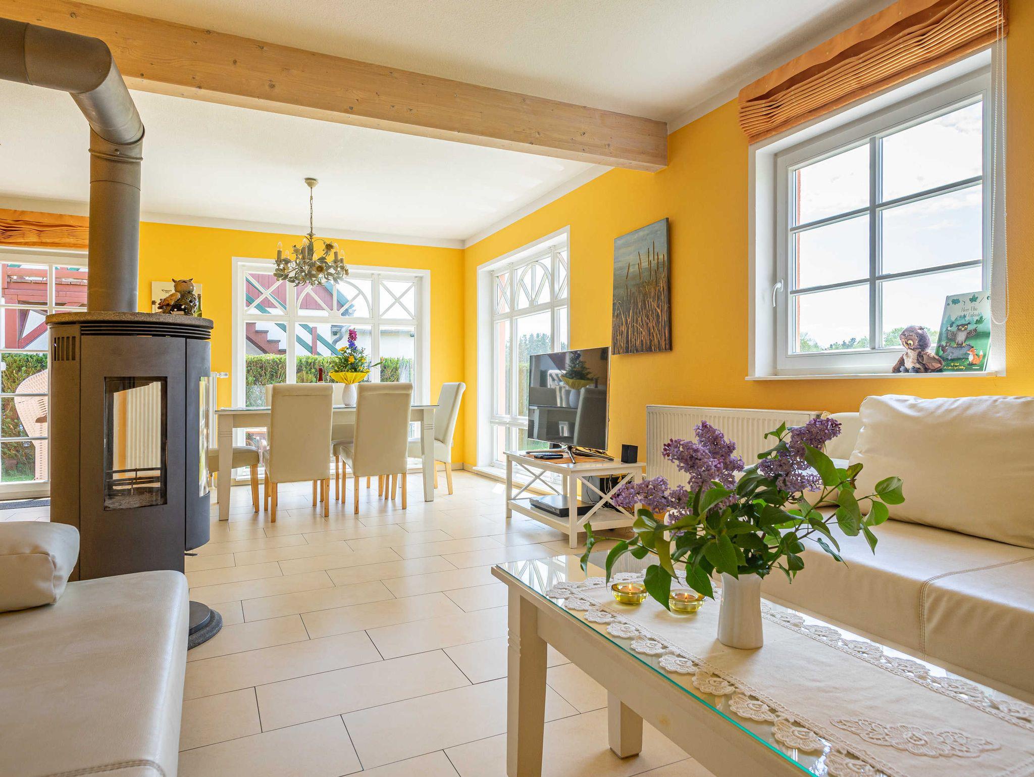 Auf mehr als 120 qm Grundfläche finden bis zu 6 Personen optimale Bedingungen für einen entspannten Urlaub. Genießen Sie den Tag über die Sonne im Strandkorb im Garten oder lassen Sie abends in der Sauna oder vor dem knisternden Kamin die Seele baumeln.